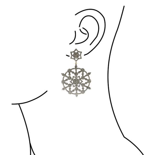 DIAMOND DESIGNER EARRING/Diamond Count 1:/Diamond 1 TCW:4.38/Diamond Color & Clarity:J-L/I1-I2/Diamond Count 2:/Diamond 2 TCW:/Diamond Count 3:/Diamond 3 TCW:/Diamond Color & Clarity:/Gemstone Count 1: /Gemstone 1 TCW:/Gemstone Type:/Gemstone Count 2: /Gemstone 2 TCW:/Gemstone Type:/Gemstone Count 3: /Gemstone 3 TCW:/Gemstone Type:/Metal 1:14k GoldYellow Gold/Gram Weight:0.78over0.925 SilverSterling Silver /Weight/gram:14.28/Gross Weight:15.94/Item-Size (HxW mm):