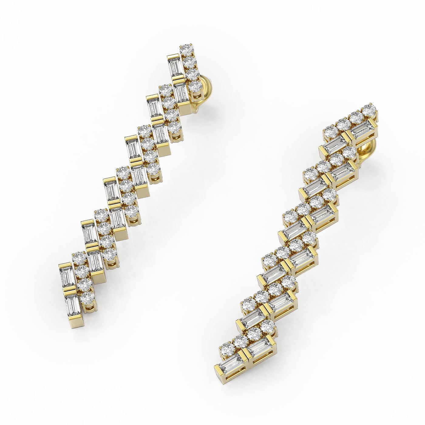 SKU: 47915 ---- 4.38 ctw Baguette Cut Diamond Designer Earrings 18K Yellow Gold