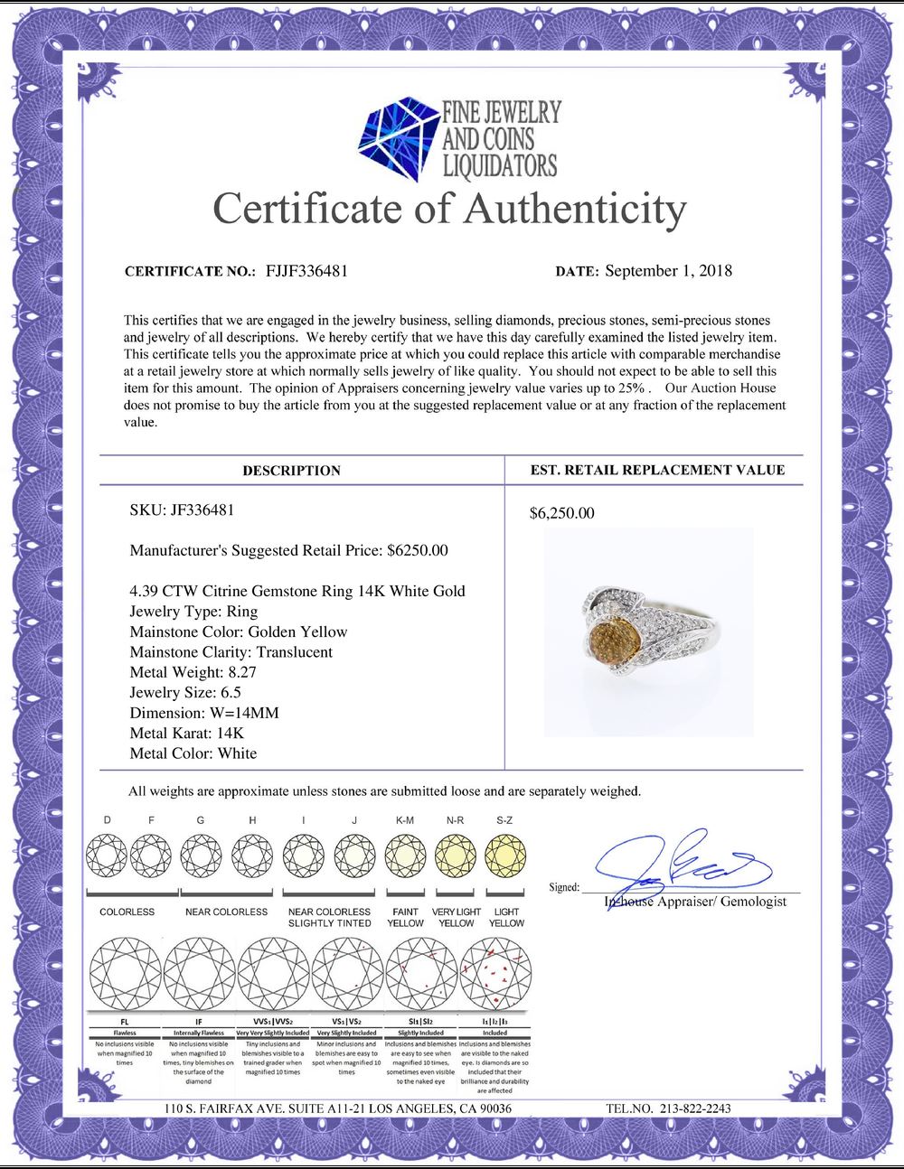 REF-82K7W - JF336481 ---- 4.39 CTW Citrine & White Round Diamond Ring 14K White Gold