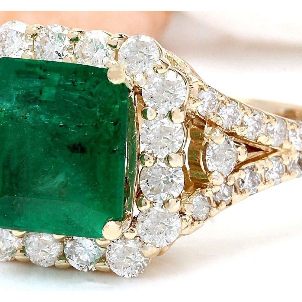 4.39 Carat Natural Emerald 18K Solid Yellow Gold Diamond Ring