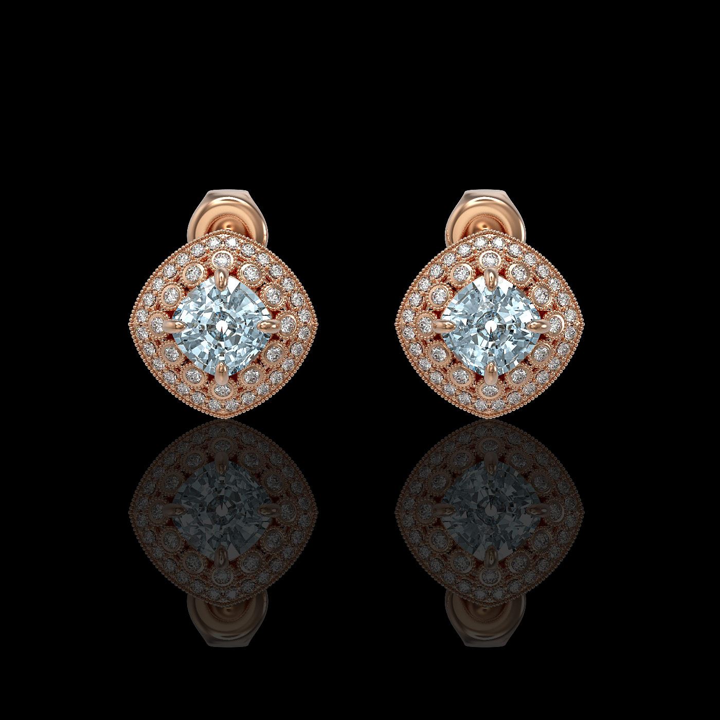 REF-131A8N - SKU: 44133 ---- 4.39 ctw Aquamarine & Diamond Victorian Earrings 14K Rose Gold