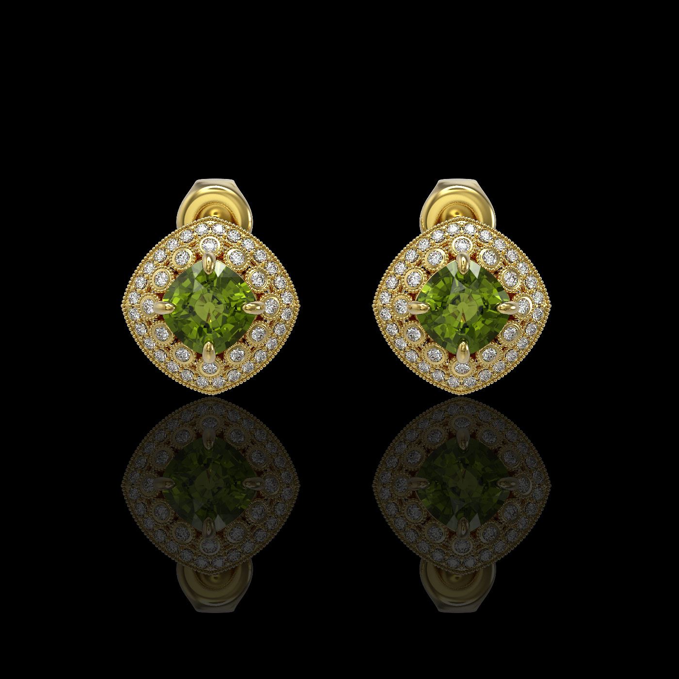 REF-131M8G - SKU: 44140 ---- 4.39 ctw Tourmaline & Diamond Victorian Earrings 14K Yellow Gold