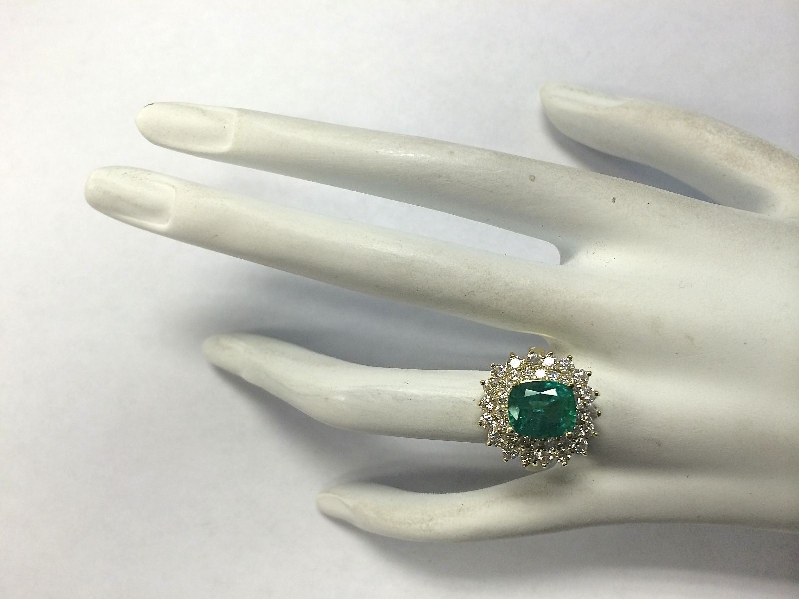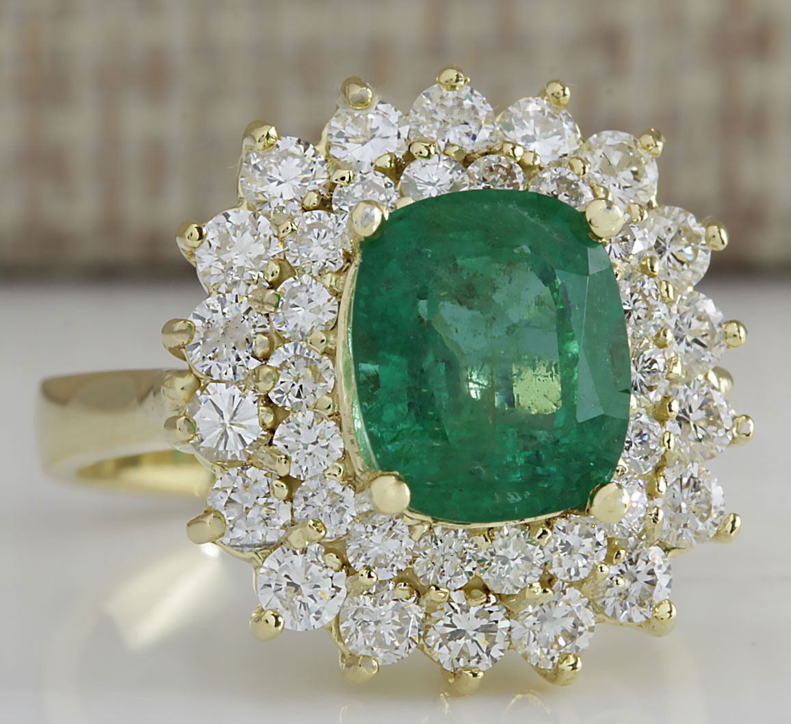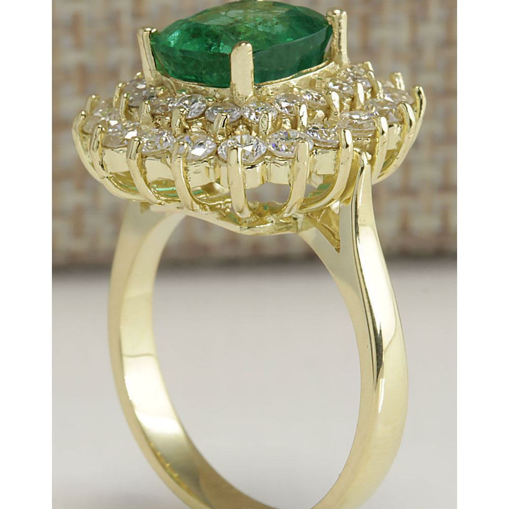 4.39CTW Natural Emerald And Diamond Ring 14K Solid Yellow Gold