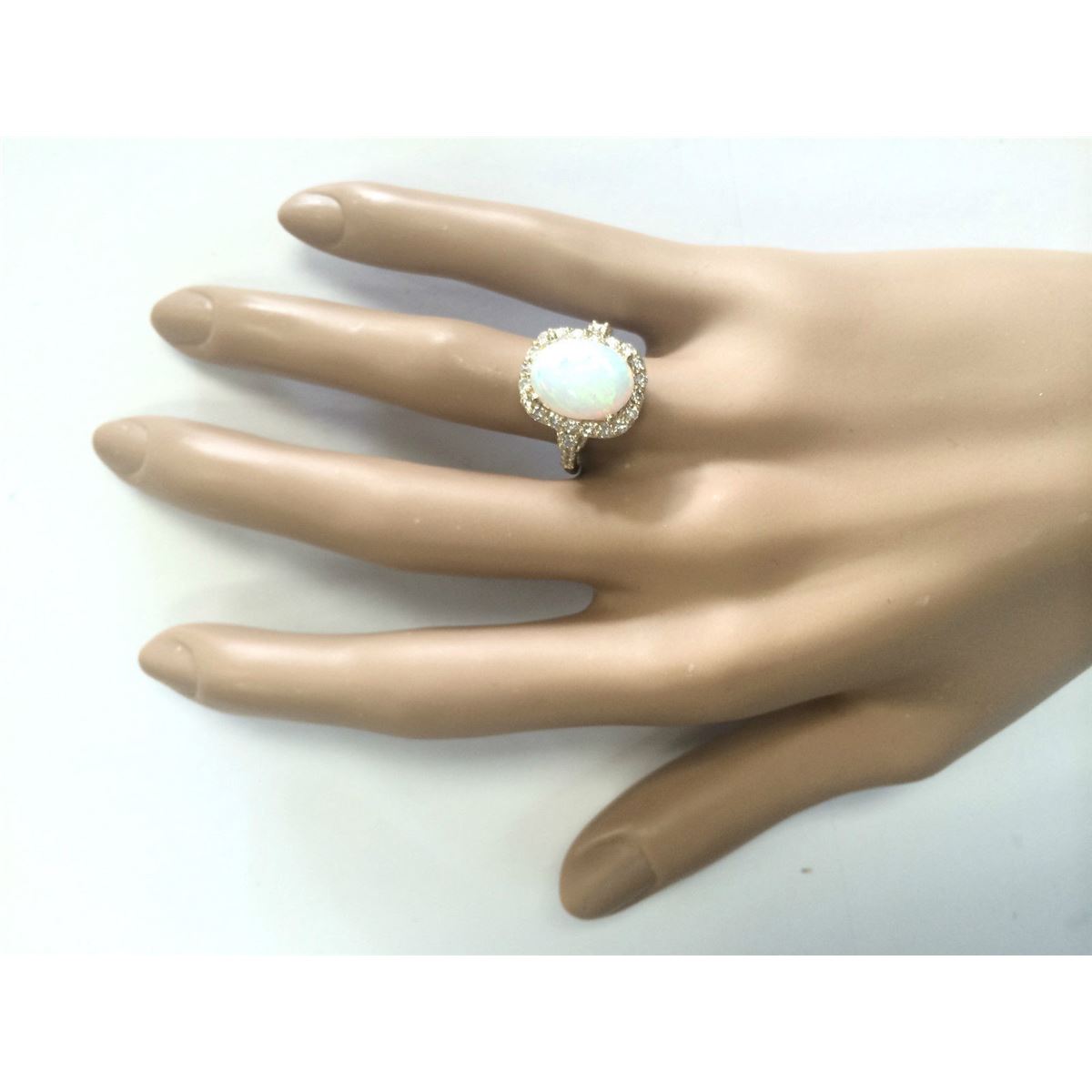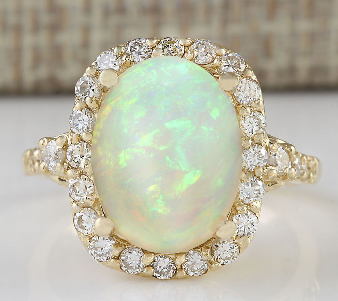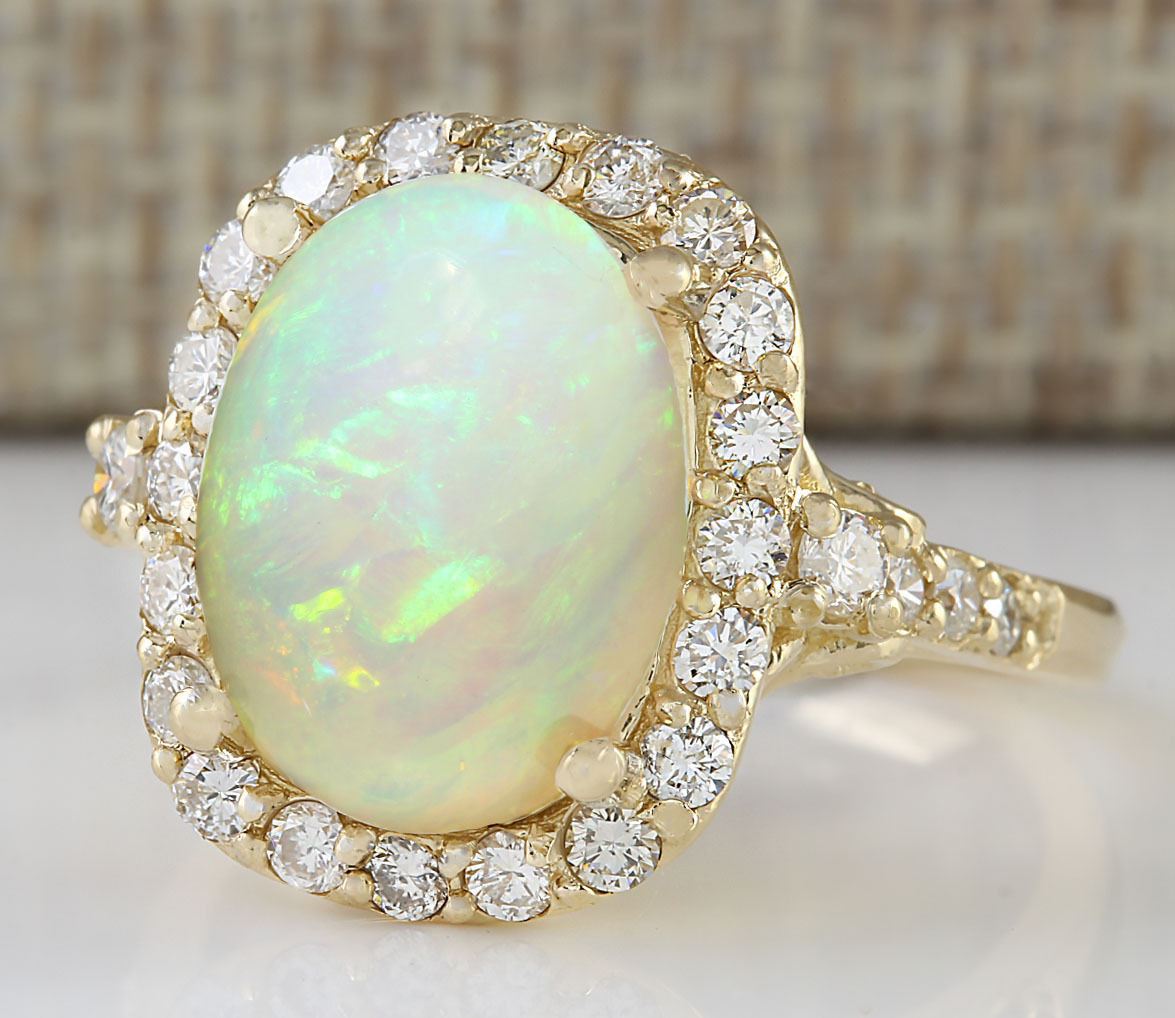 Stamped: 14K Ring Size: 6.75 Total Ring Weight: 5.6 Grams Diamond Weight: Total natural diamond weight is .70carat. SI1-SI2 clarity / G-H color Gemstone Weight: Total Natural Opal Weight is 3.70ctw (Measures: 12.90x9.80mm) Main Stone Color: Multi-Color Face Measures: 15.93x16.95mm SKU: [703878]