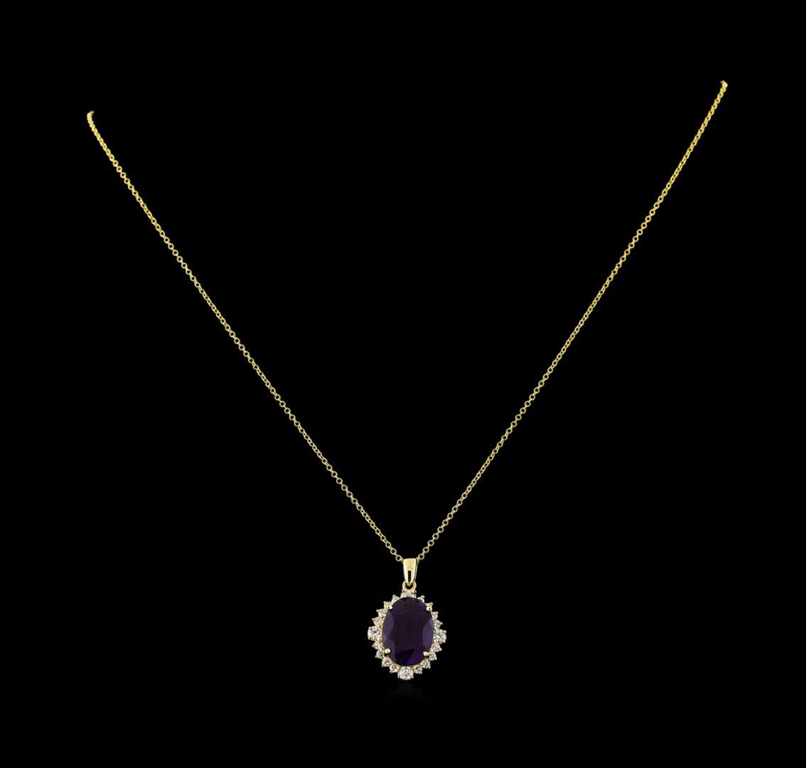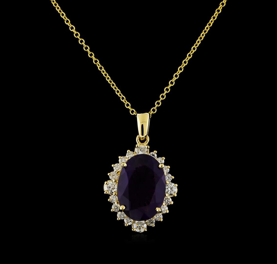 One Pendant With Chain featuring: 14KT Yellow Gold weighing 3.54 grams containing one Amethyst center stone with a total weight of 4.4ct and Diamonds with a total weight of 0.65ct.