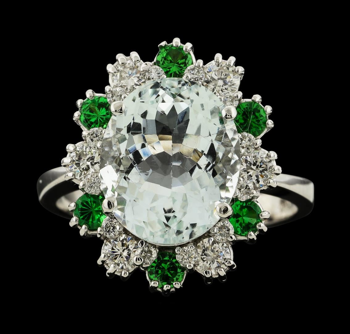 4.40 ctw Aquamarine, Tsavorite and Diamond Ring - 14KT White Gold