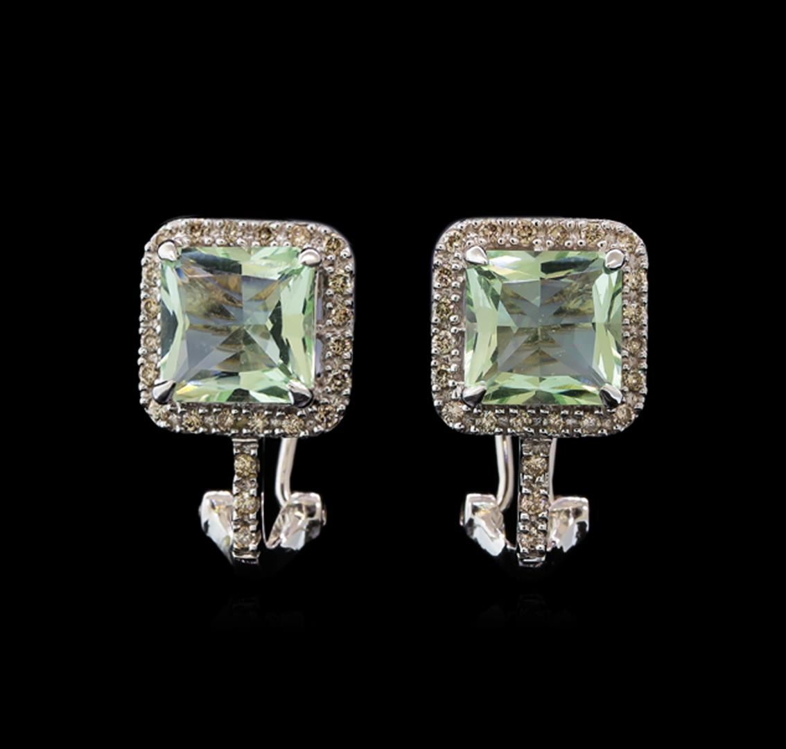 One pair of earrings featuring: 14KT white gold containing Green Amethyst with a total weight of 4.40ct and diamonds with a total weight of 0.33ctw.
