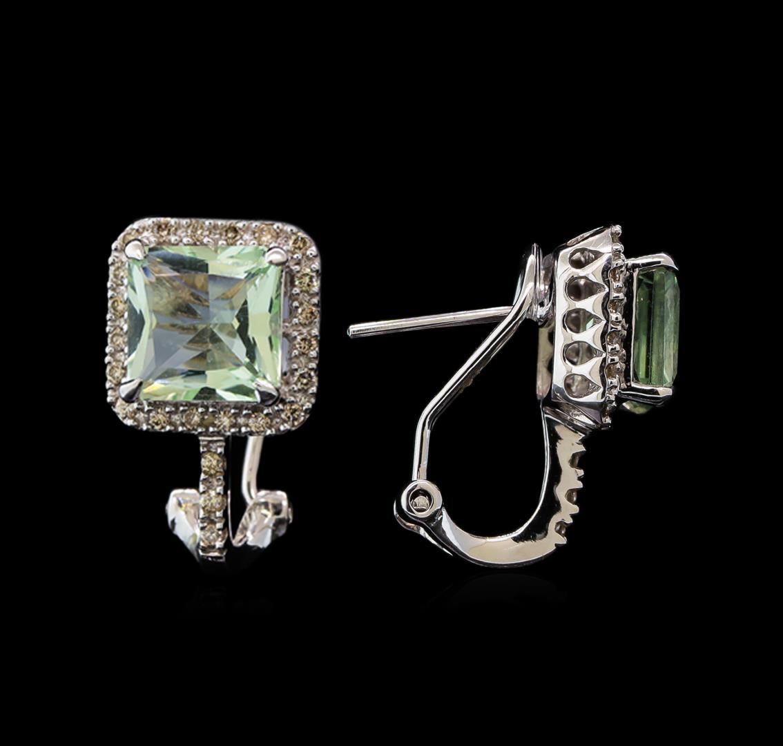 One pair of earrings featuring: 14KT white gold containing Green Amethyst with a total weight of 4.40ct and diamonds with a total weight of 0.33ctw.