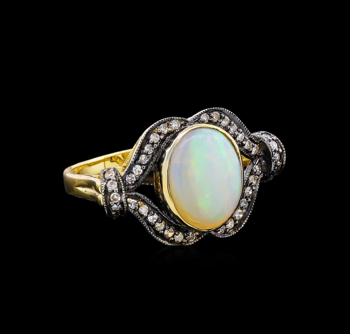 One ring featuring: 18KT yellow gold weighing 4.10 grams containing one opal with a total weight of 4.40ct and diamonds with a total weight of 0.20ct.