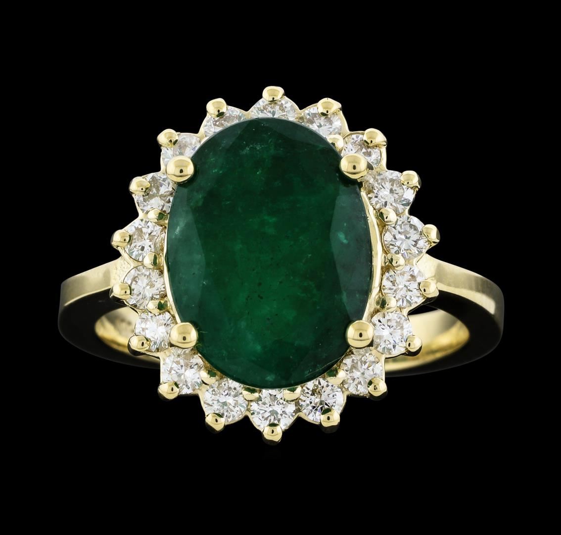 4.41 ctw Emerald and Diamond Ring - 14KT Yellow Gold