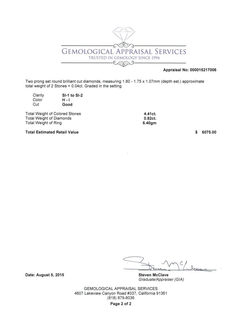 Not all Jewelry, watches or loose stones are appraised and the appraisals are provided for bidders only in certain instances at the discretion of SAA. Our appraisals are conducted by independent third-party appraisal firms. Such firms may be certified GIA Gemologists or have education in the industry or alternative certifications. Appraisals should be used for verification of gemstone and/or metal weight, size, and grade only, not actual value for resale or insurance purposes. Appraisal value should be not considered for actual value, as price varies greatly from retail locations and other merchants in different geographic locations. All Items auctioned by SAA should not be purchased with a view or expectation toward resale for appraisal price given, or to make a profit. The ultimate value for which an item can be resold may vary drastically from the appraisals listed by SAA.