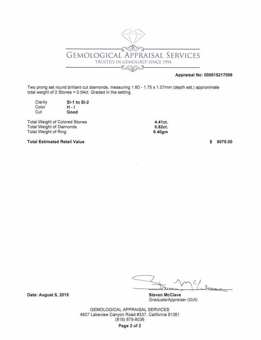 Not all Jewelry, watches or loose stones are appraised and the appraisals are provided for bidders only in certain instances at the discretion of SAA. Our appraisals are conducted by independent third-party appraisal firms. Such firms may be certified GIA Gemologists or have education in the industry or alternative certifications. Appraisals should be used for verification of gemstone and/or metal weight, size, and grade only, not actual value for resale or insurance purposes. Appraisal value should be not considered for actual value, as price varies greatly from retail locations and other merchants in different geographic locations. All Items auctioned by SAA should not be purchased with a view or expectation toward resale for appraisal price given, or to make a profit. The ultimate value for which an item can be resold may vary drastically from the appraisals listed by SAA.