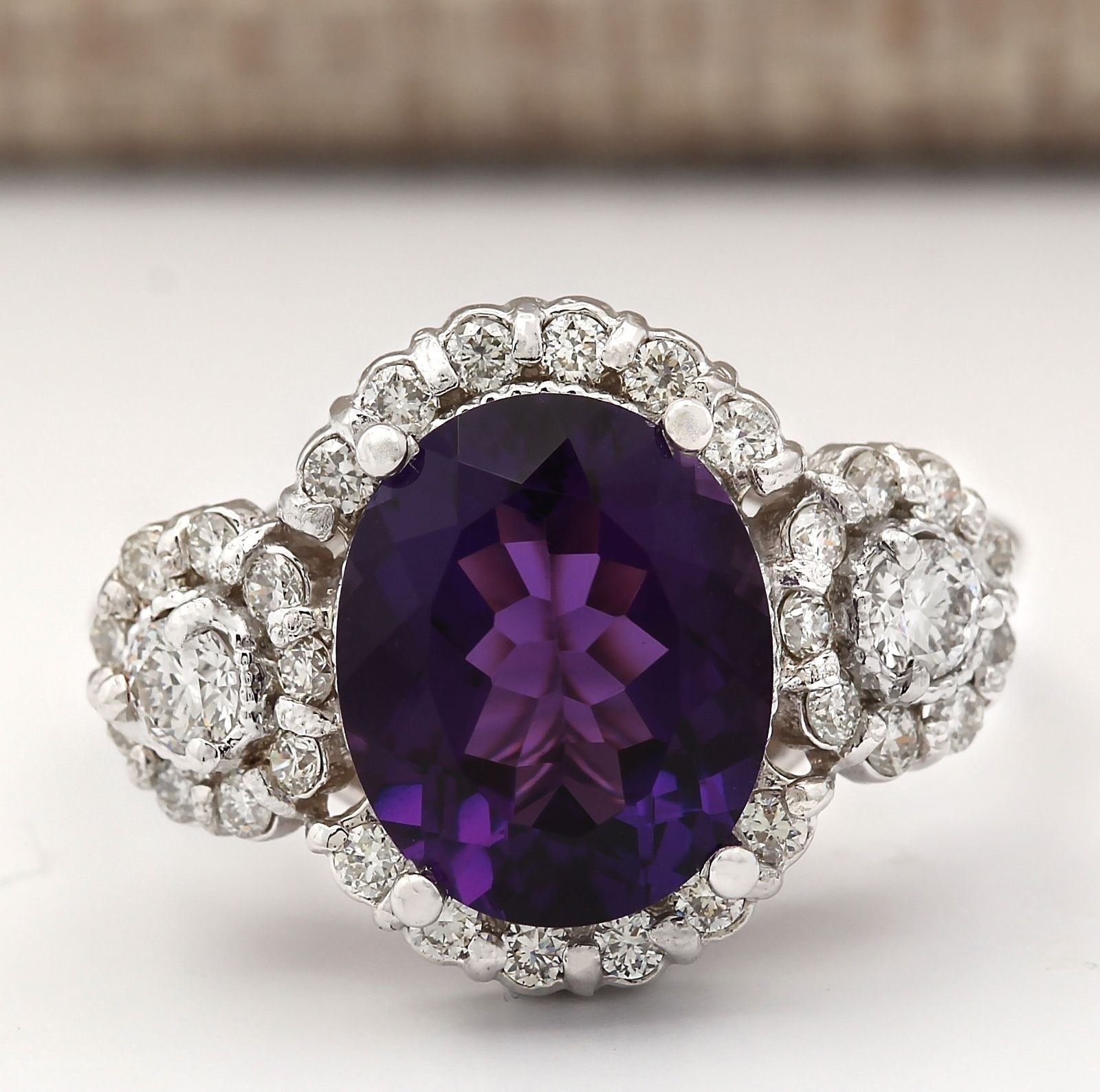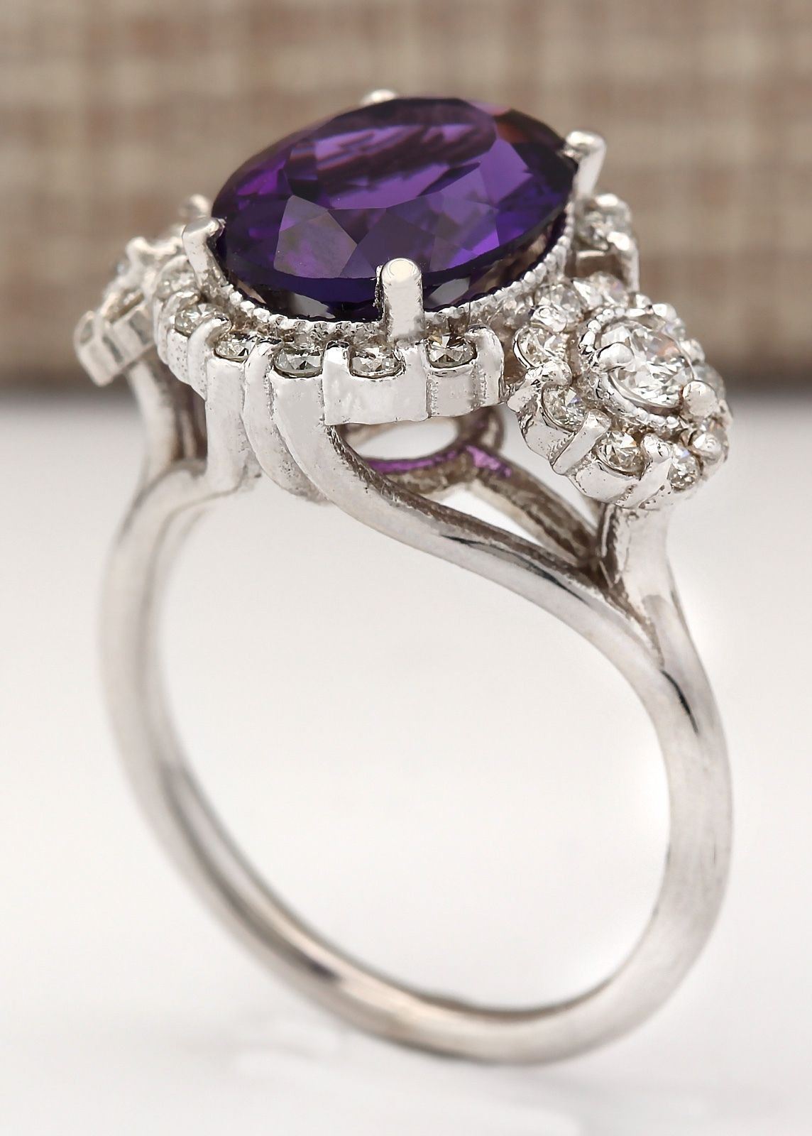 4.42 CTW Natural Amethyst And Diamond Ring In 14k White Gold