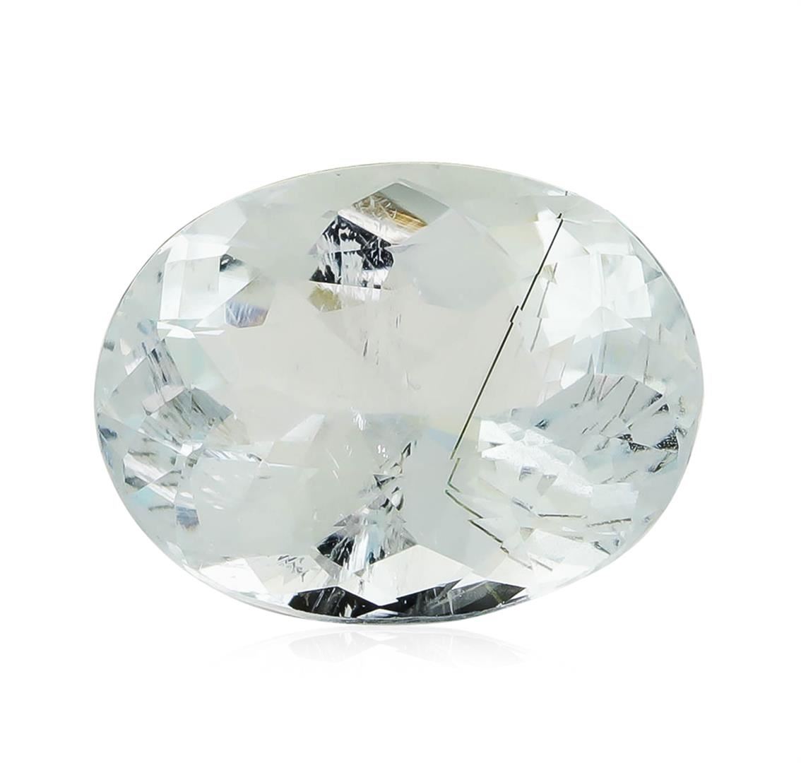 One natural oval cut aquamarine with an exact weight of 4.42ct., clarity is slightly included, slightly grayish greenish blue. Gemological Appraisals Services estimates the retail value at $1547 GAS Appraised.