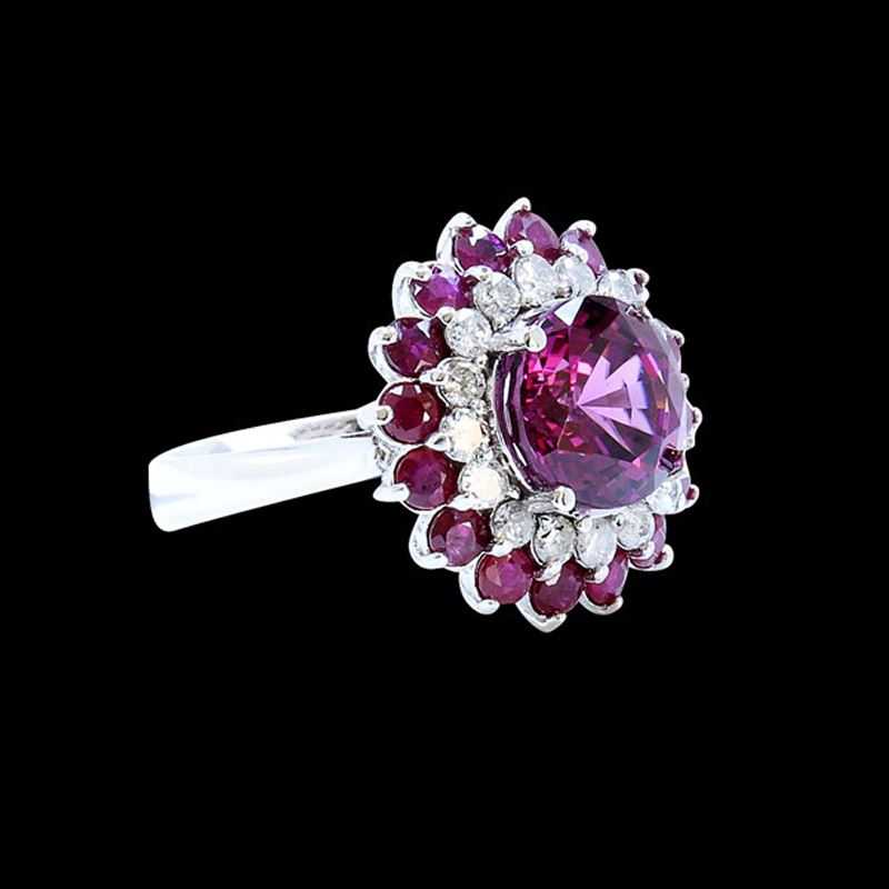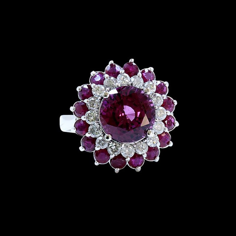 14KW/G NATURAL RASPBERRY GARNET RING: 6.31GM/RASPBERRY GARNET: 4.42CT/DIA :0.64CT/RUBY :1.57CT/#GVR1361