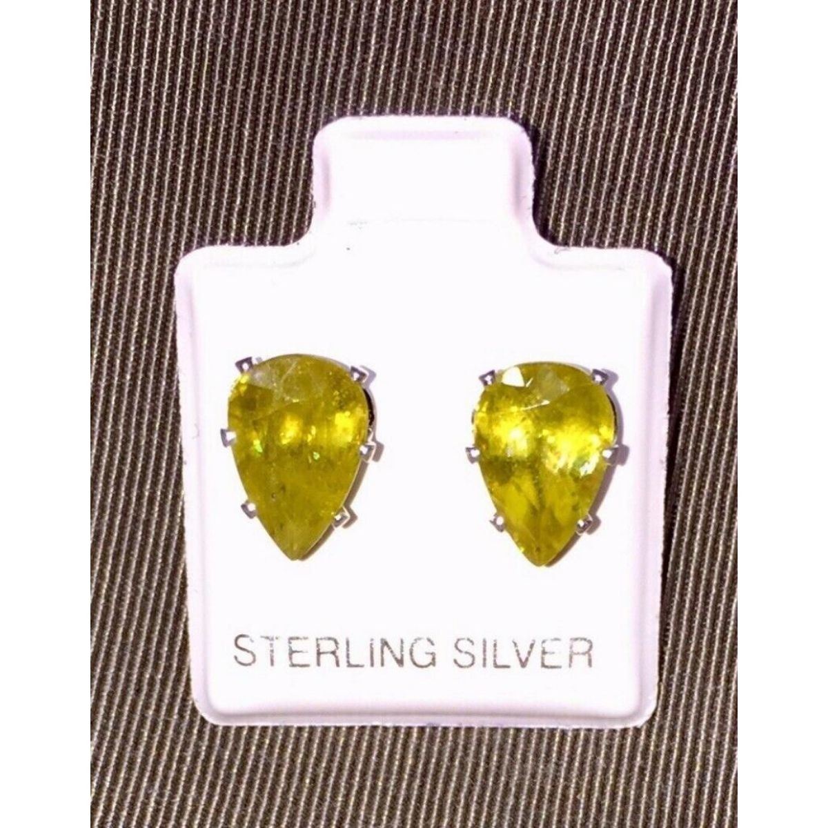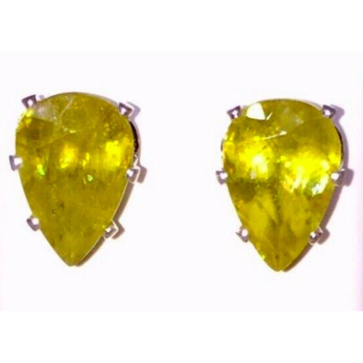 4.44ctw pair of bright yellow color flash pear-shaped sphene gemstones (7 X 10mm) set into sterling silver post earrings.