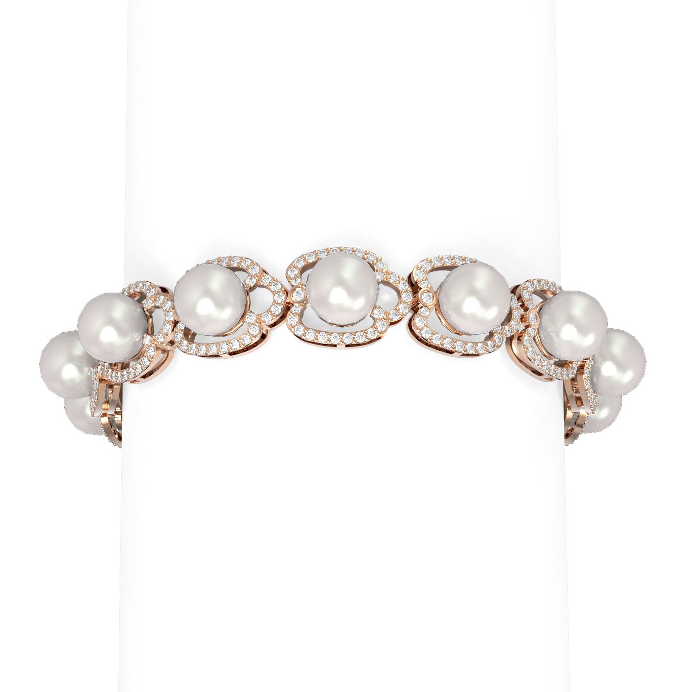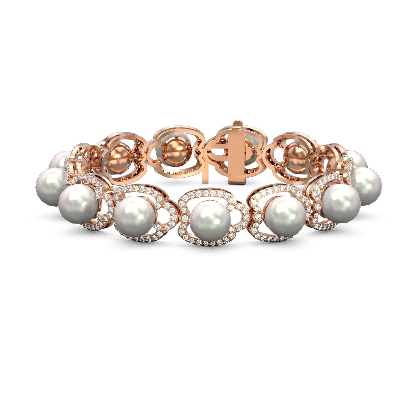 REF-482F8M - SKU: 61350 ---- 4.45 ctw Diamond & Pearl Bracelet 18K Rose Gold
