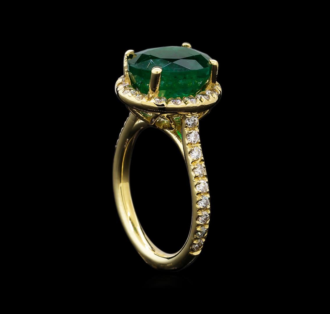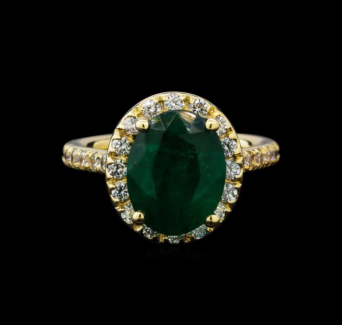 One ring featuring: 14KT yellow gold weighing 5.48 grams containing one emerald weighing 4.45ct and diamonds weighing 0.75ctw.