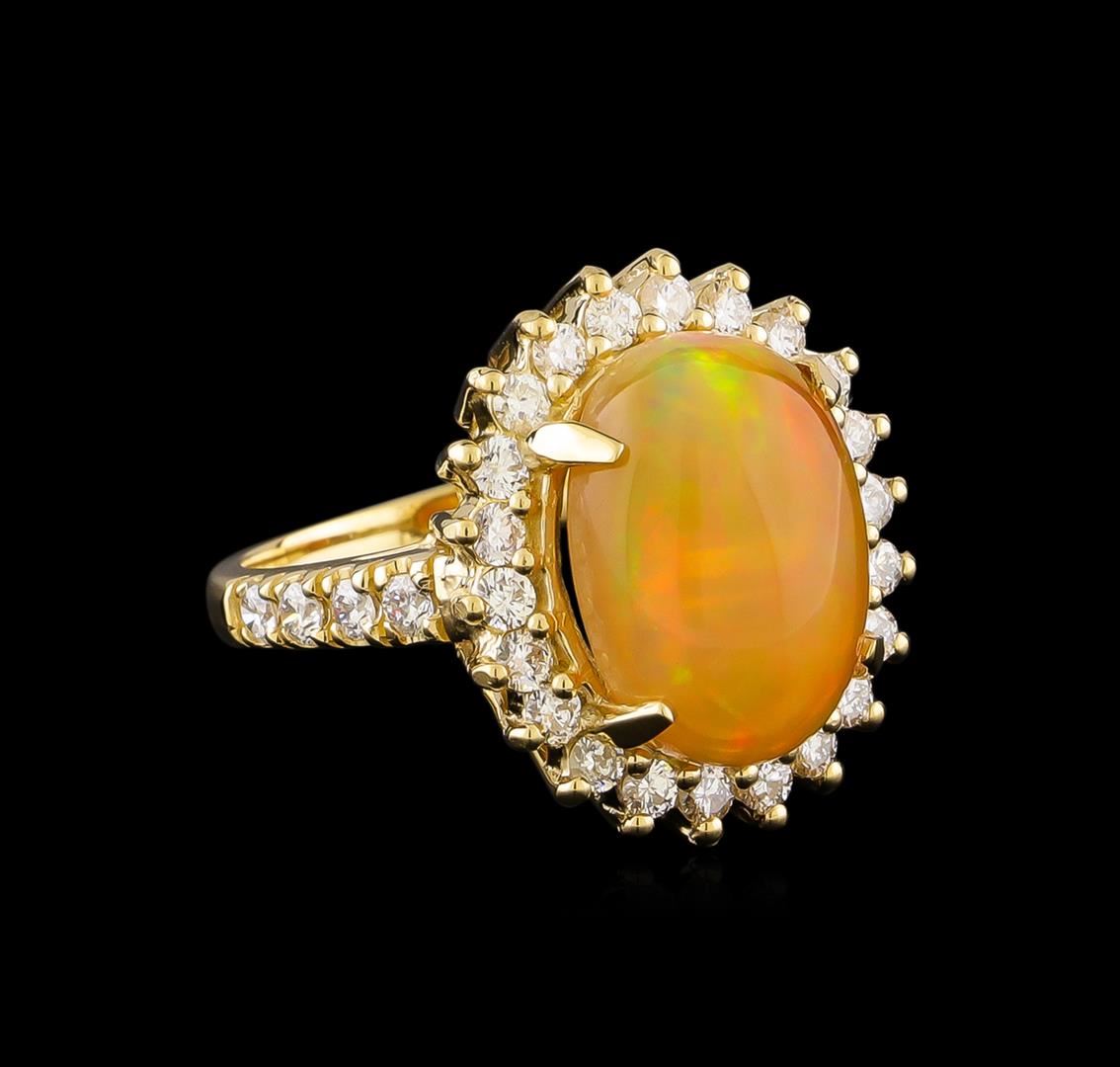 One ring featuring: 14KT Yellow Gold weighing 6.33 grams containing one Opal center stone with a total weight of 4.45ct and diamonds with a total weight of 0.91ct.