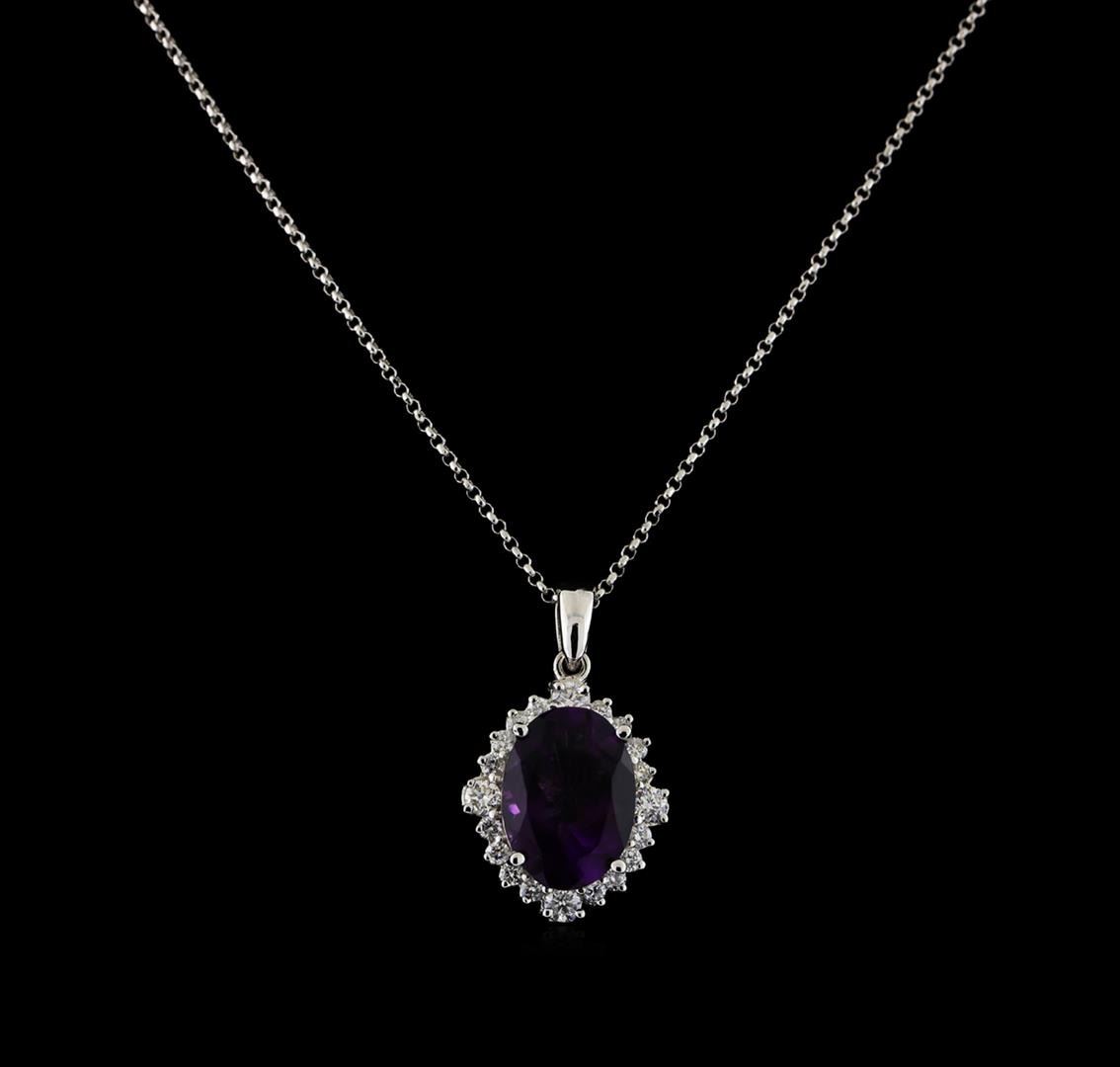 4.46 ctw Amethyst and Diamond Pendant With Chain - 14KT White Gold