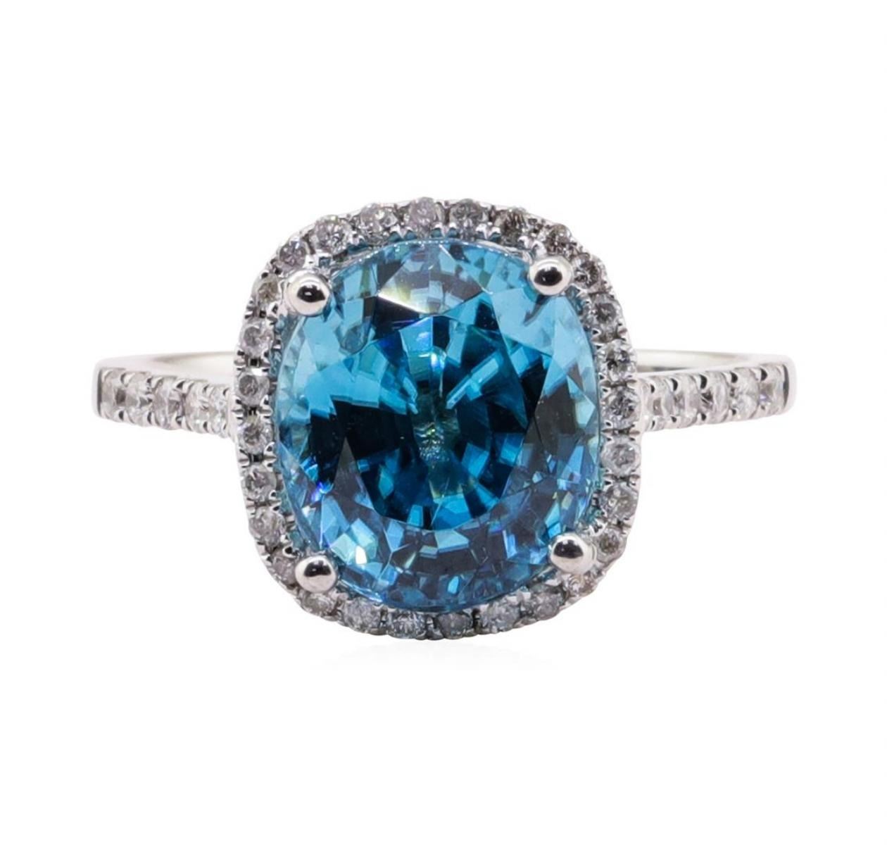 One 4.46ct Blue Zircon and Diamond Ring - 14KT White Gold. AIG certified. See Appraisal for more details. AIG Appraised.