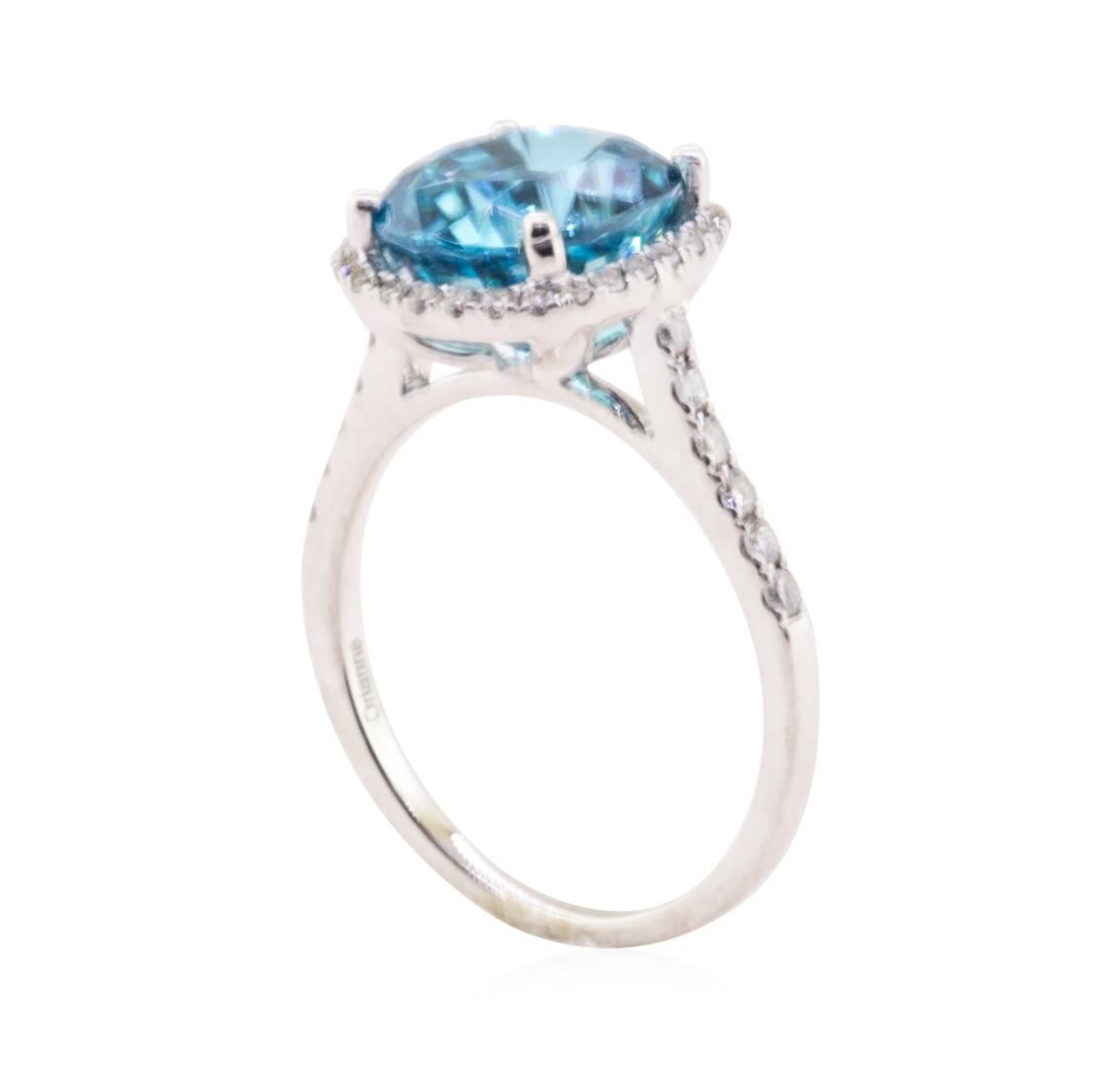 One 4.46ct Blue Zircon and Diamond Ring - 14KT White Gold. AIG certified. See Appraisal for more details. AIG Appraised.