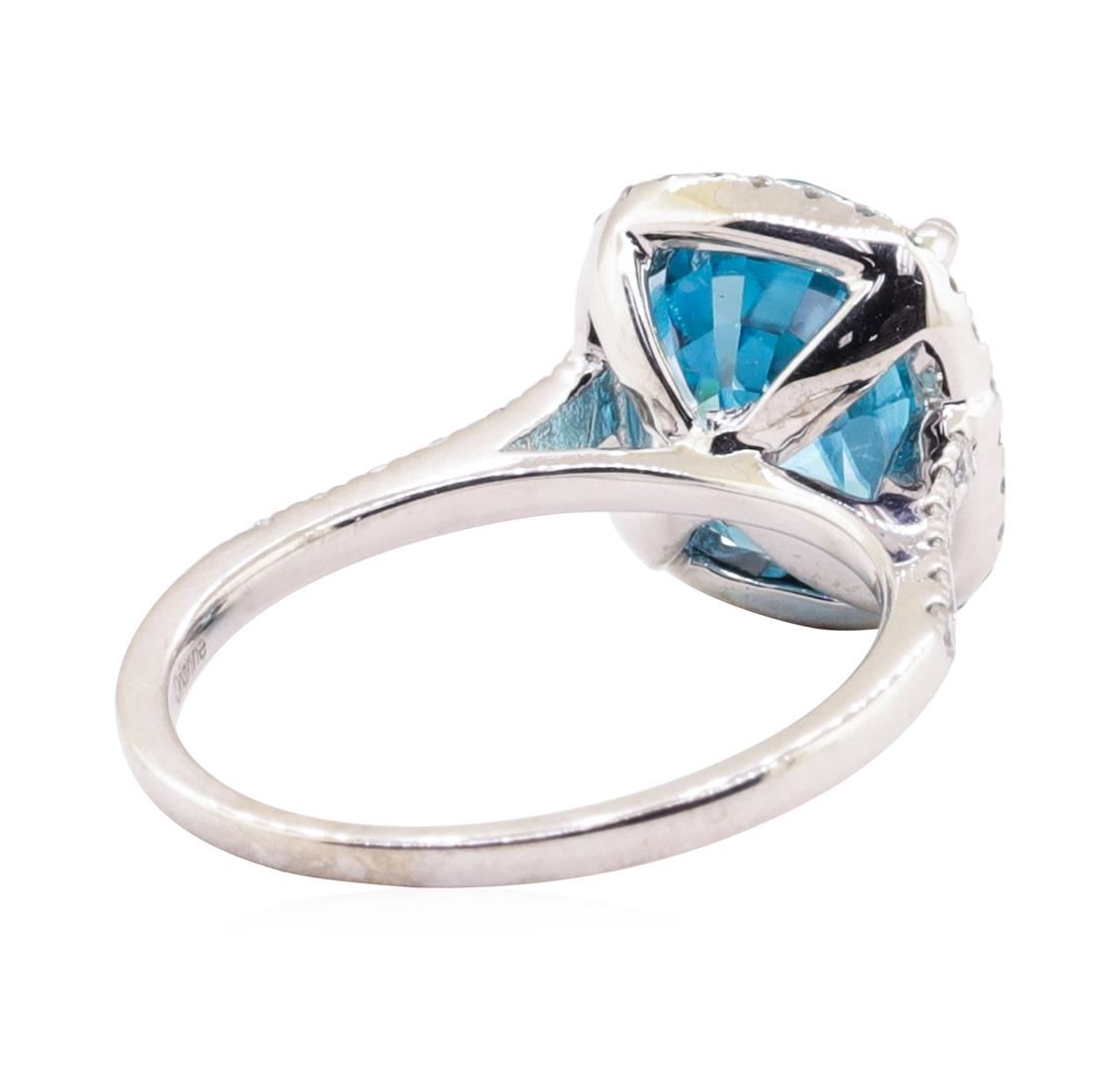 One 4.46ct Blue Zircon and Diamond Ring - 14KT White Gold. AIG certified. See Appraisal for more details. AIG Appraised.