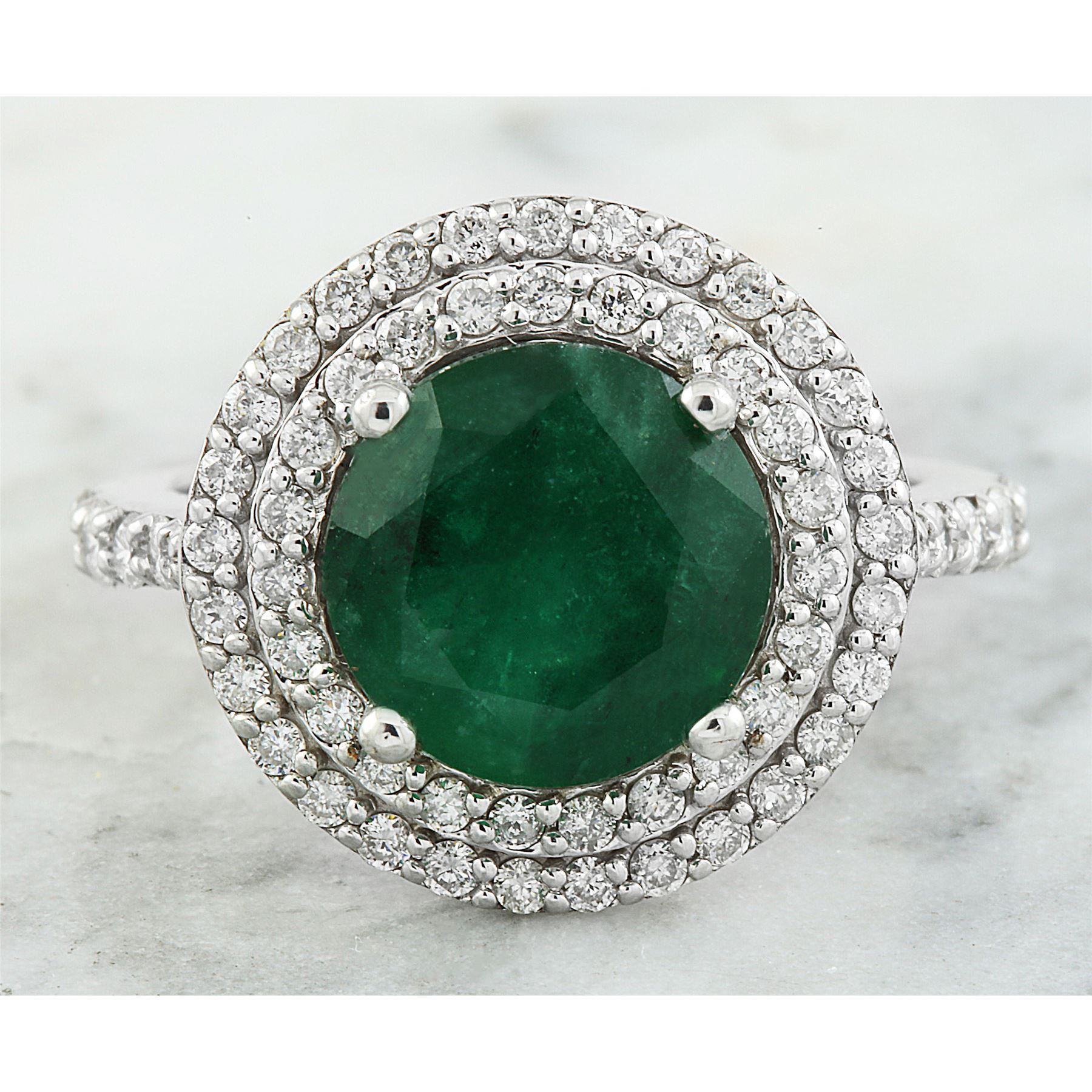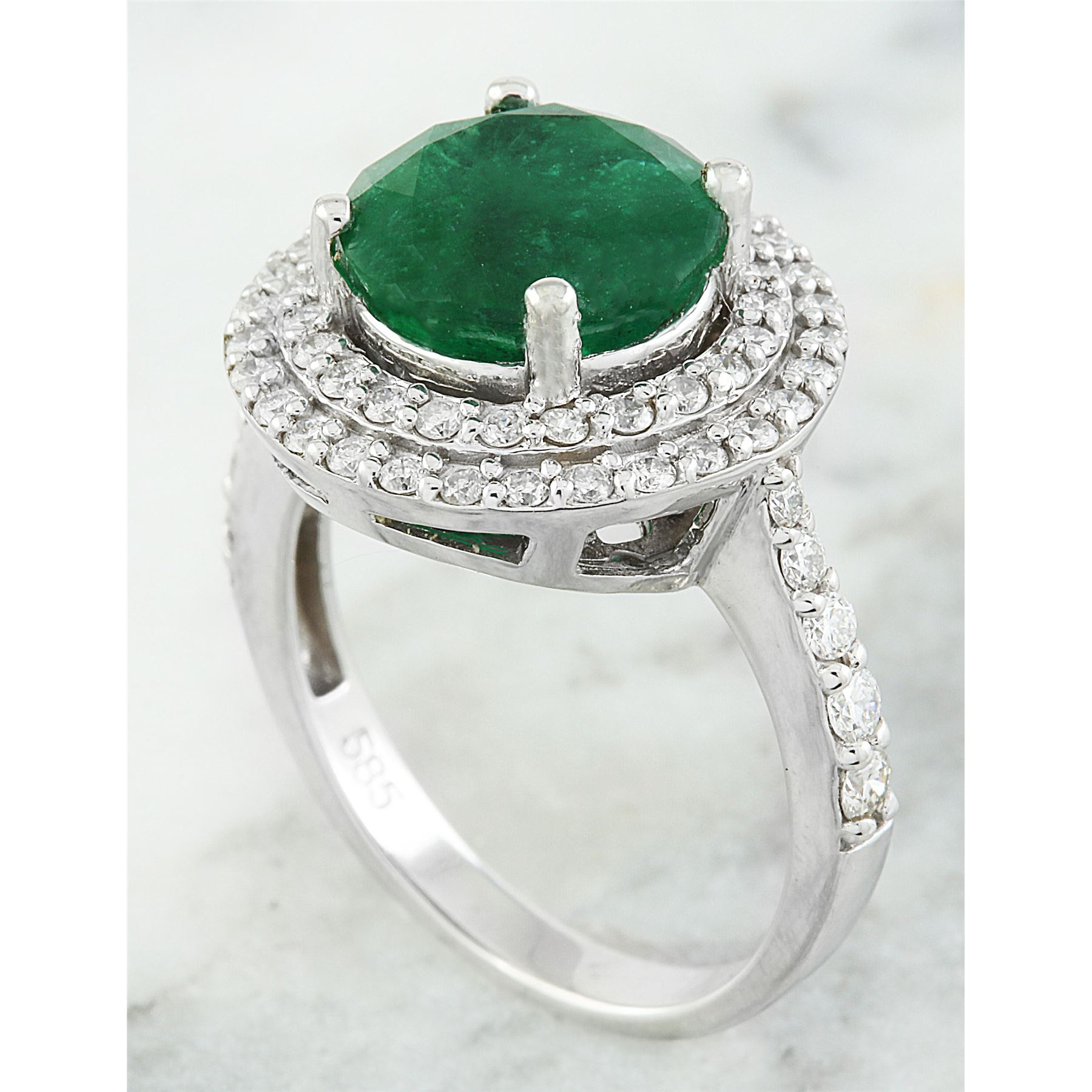 4.47 CTW Emerald 14K white Gold Diamond Ring