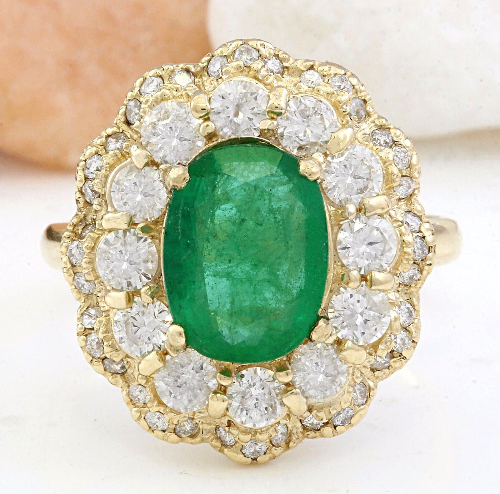 4.48 Carat Natural Emerald 18K Solid Yellow Gold Diamond Ring