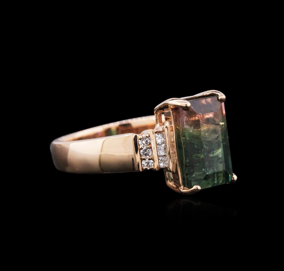 One ring featuring: 14KT rose gold weighing 4.12 grams containing one bi-color tourmaline center stone with a total weight of 4.49ct and six diamonds.
