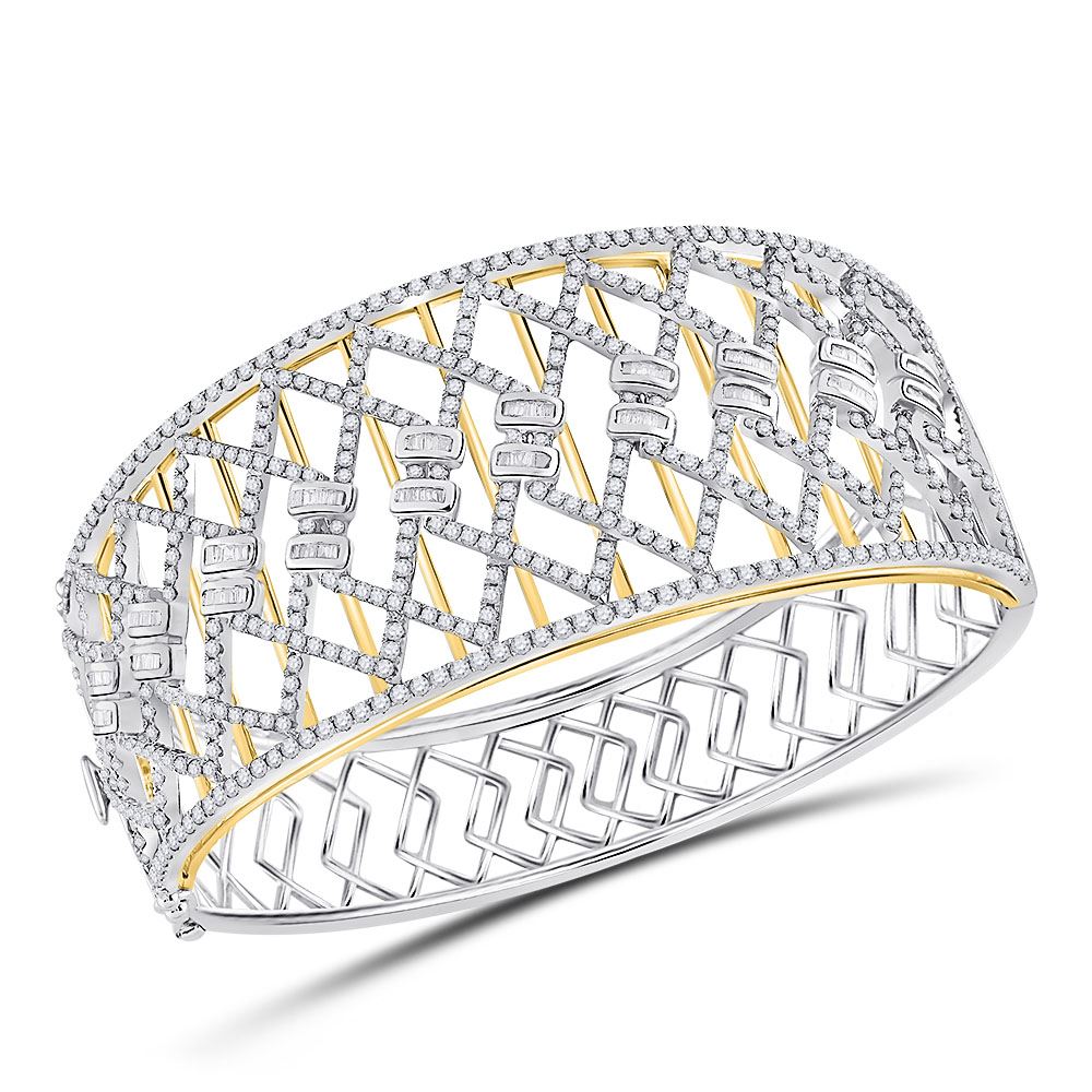 REF-449X9T ---- 4 & 5/8 CTW Round Diamond Cocktail Bangle Bracelet 14kt Two-tone Gold