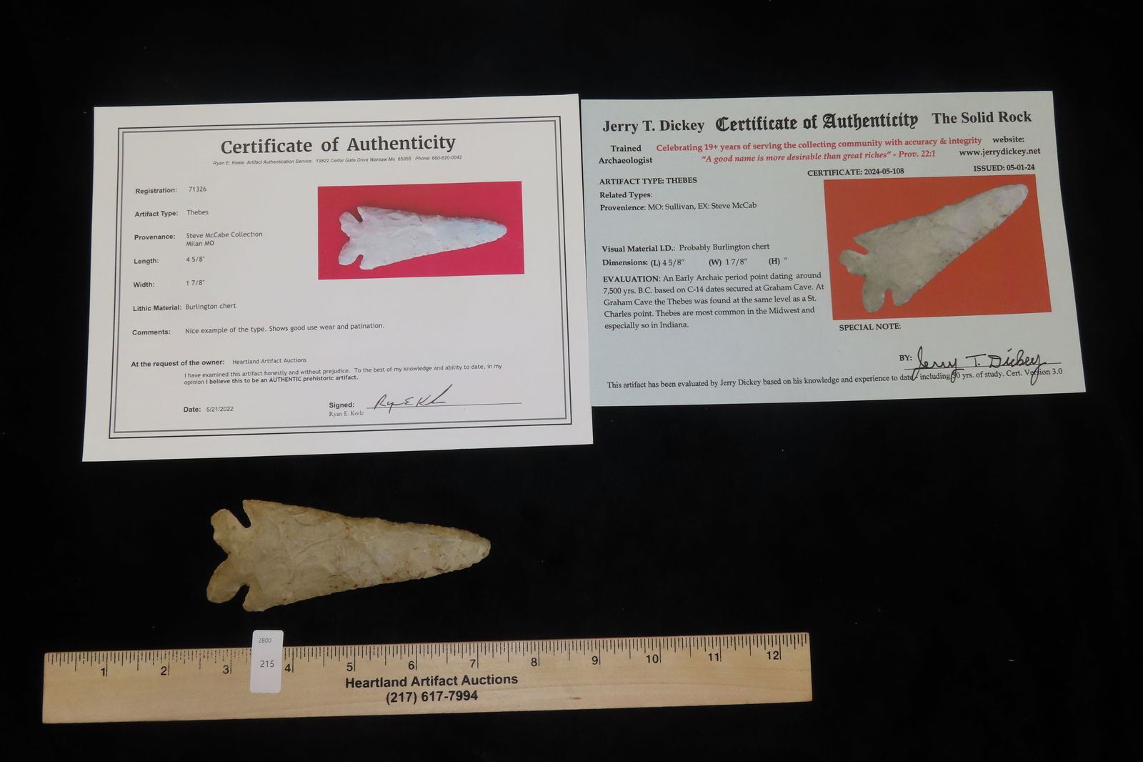 4 5/8" Thebes, Dickey/Keele COA, Found in Sullivan Co. Missouri