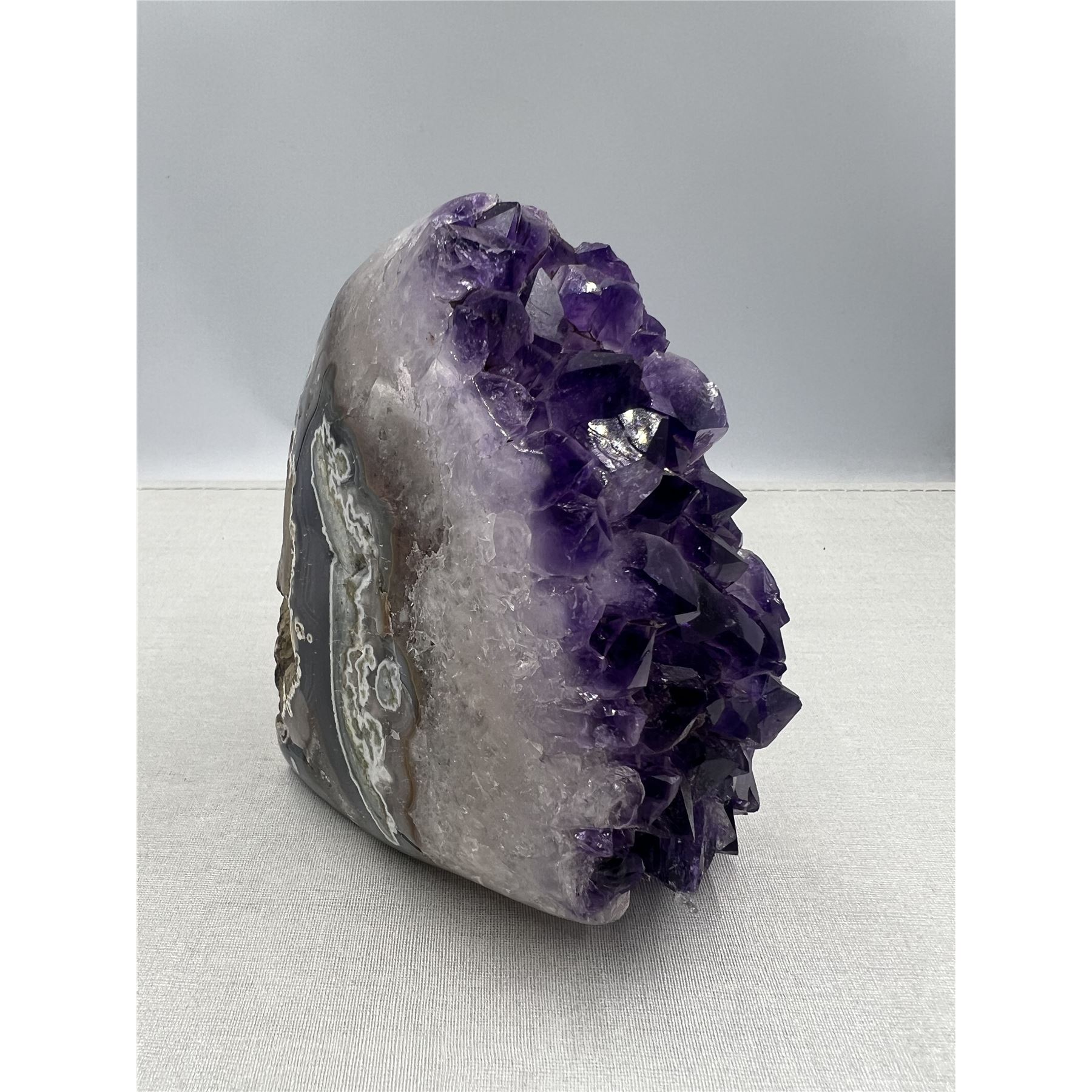 4.5 X3.6 INCH POLISHED AMETHYST GEODE WITH AGATE FORMATION ON SIDES