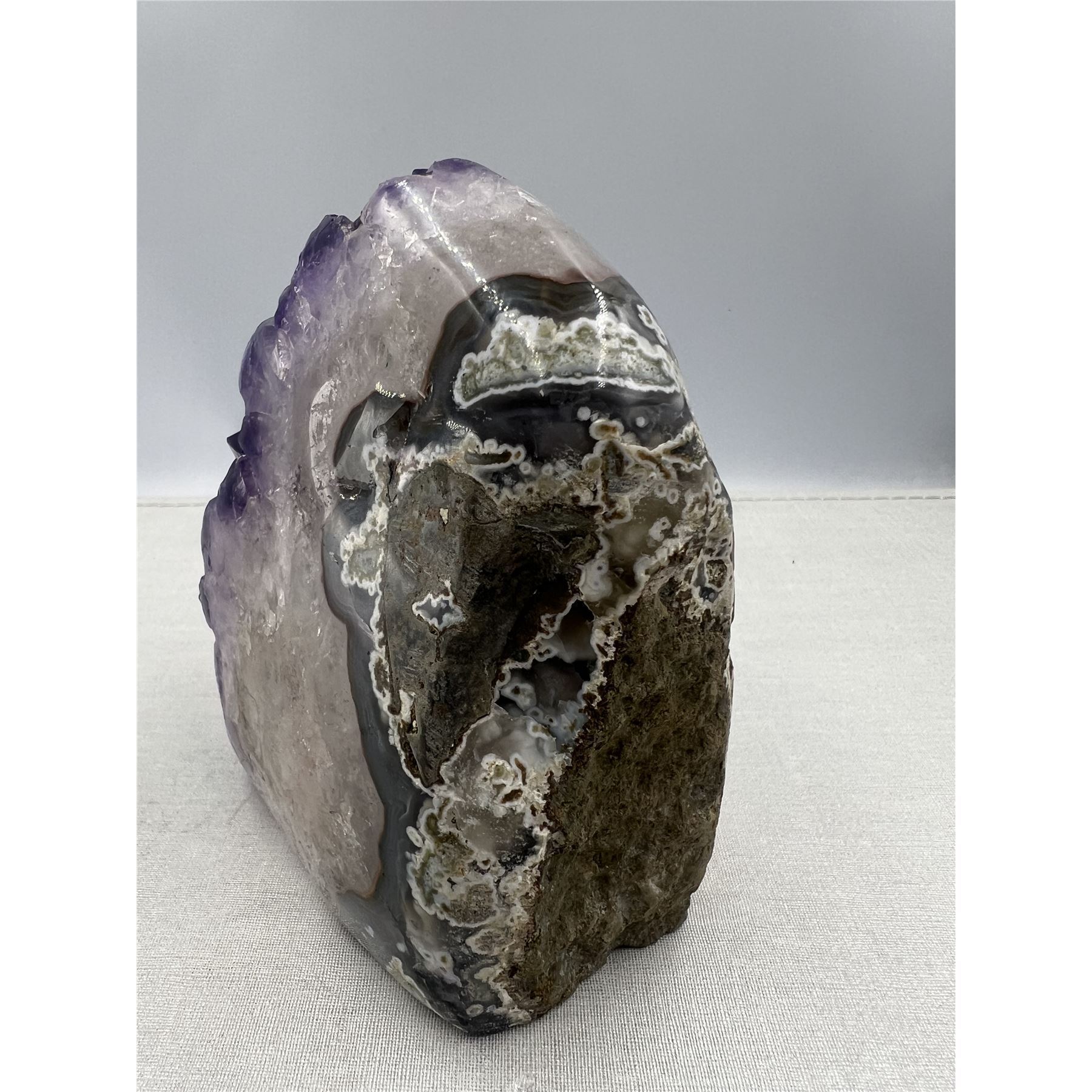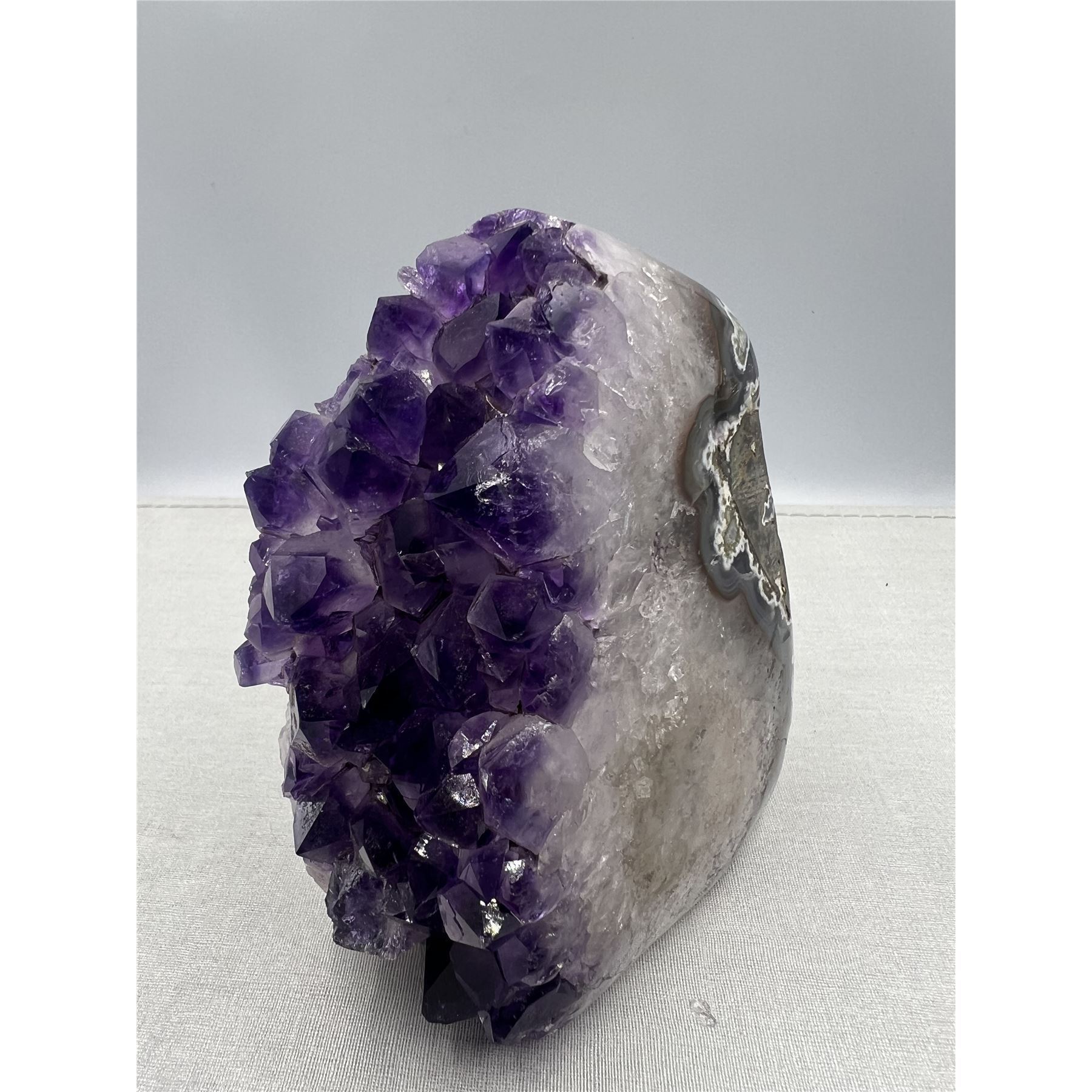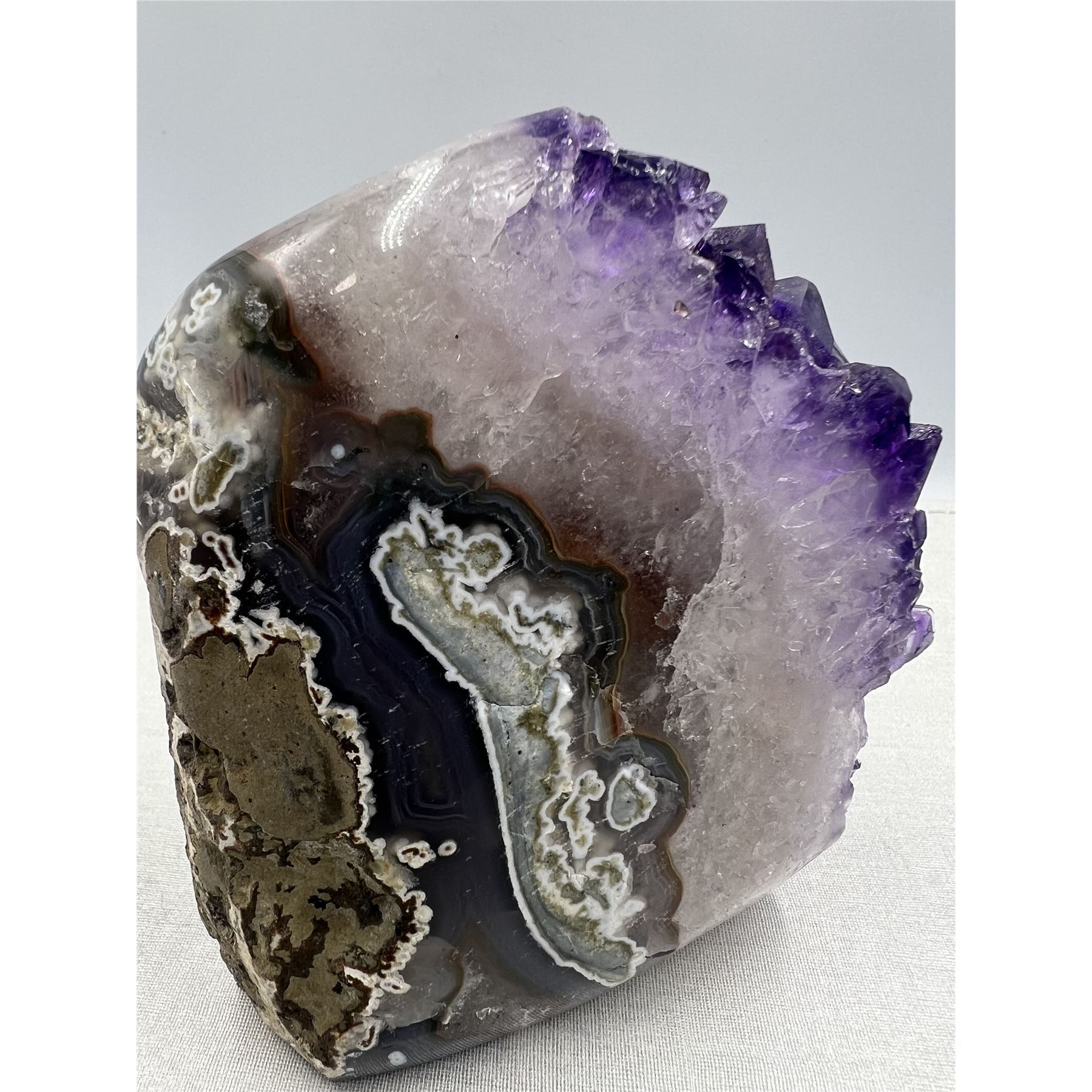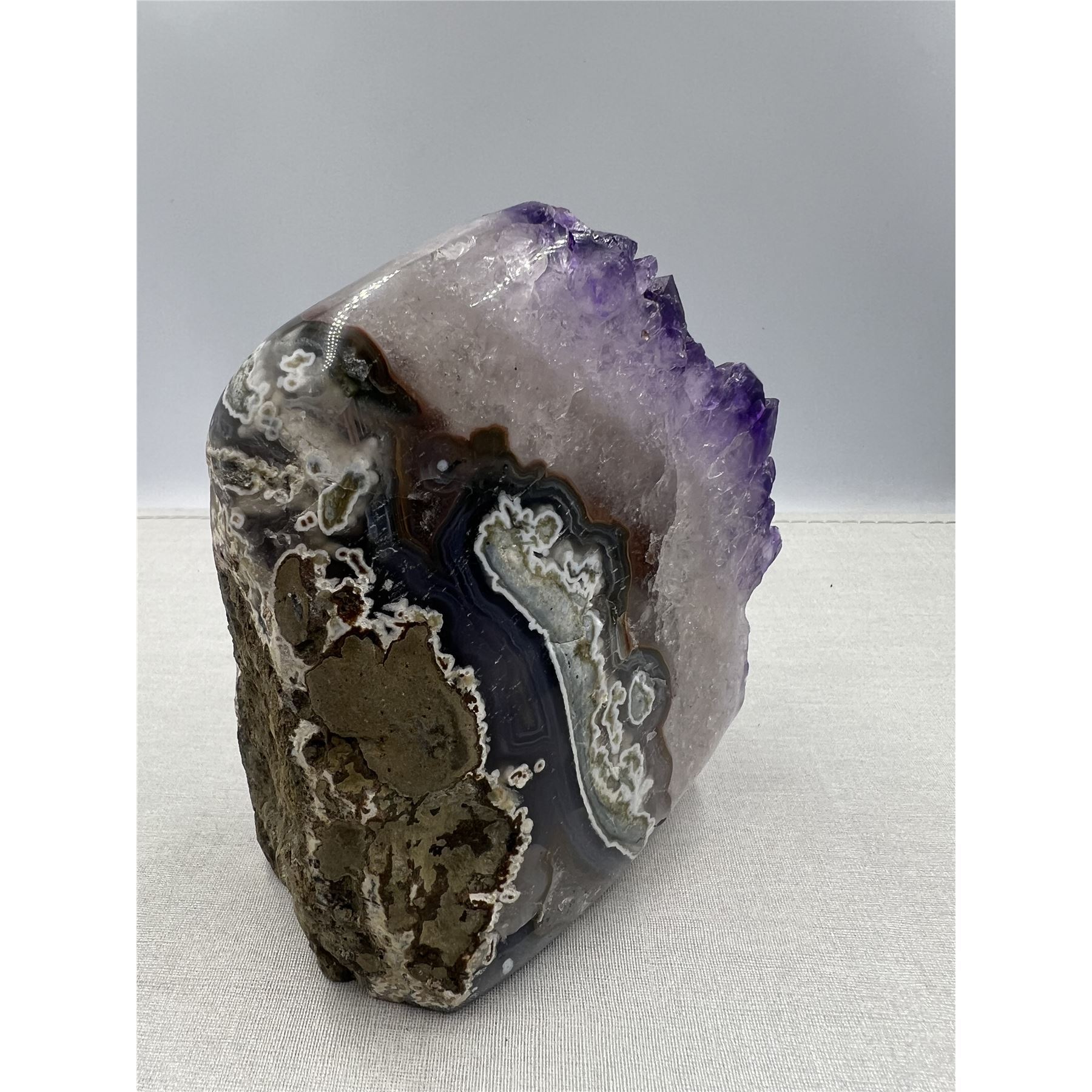 4.5 X3.6 INCH POLISHED AMETHYST GEODE WITH AGATE FORMATION ON SIDES