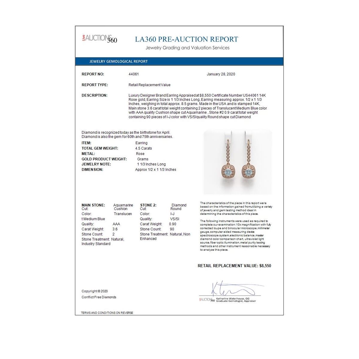 REF-172W8H - SKU: 44061 ---- 4.5 ctw Aquamarine & Diamond Victorian Earrings 14K Rose Gold