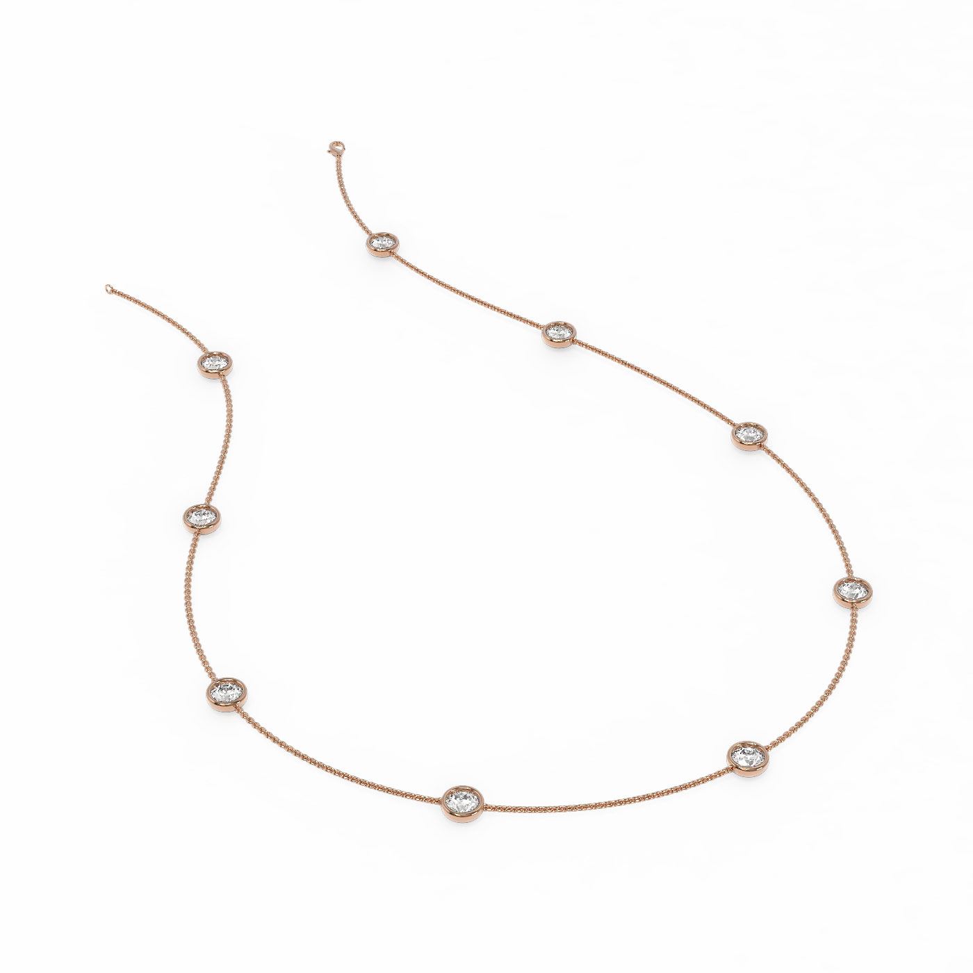 REF-738H2R - SKU: 62508 ---- 4.5 ctw Diamond Station Necklace 18K Rose Gold