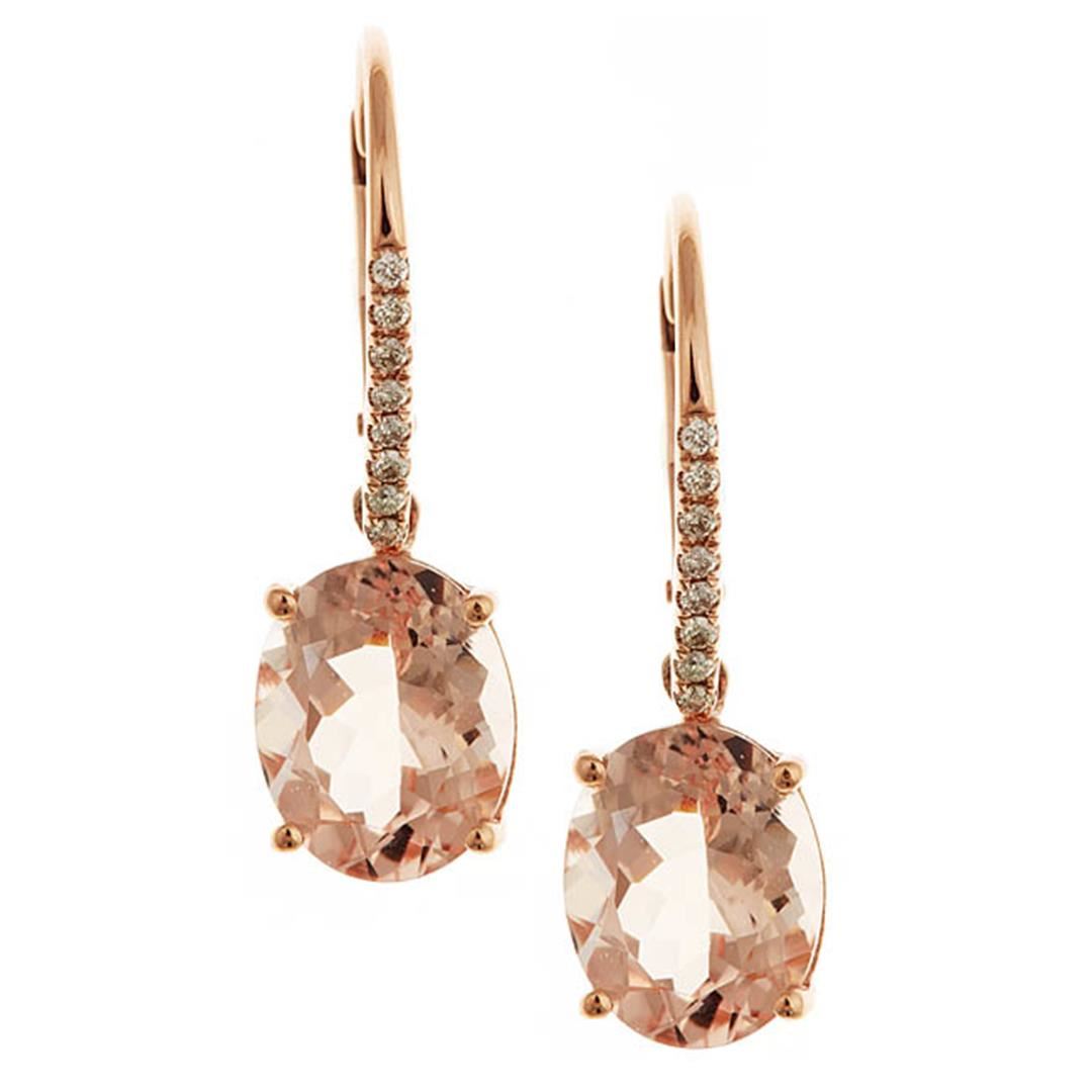 One pair of Earrings featuring: 14KT Rose Gold weighing 1.72 grams containing Morganite with an approximate weight of 4.5ct, Diamond with an approximate weight of 0.1ct, and with an approximate weight of ct.