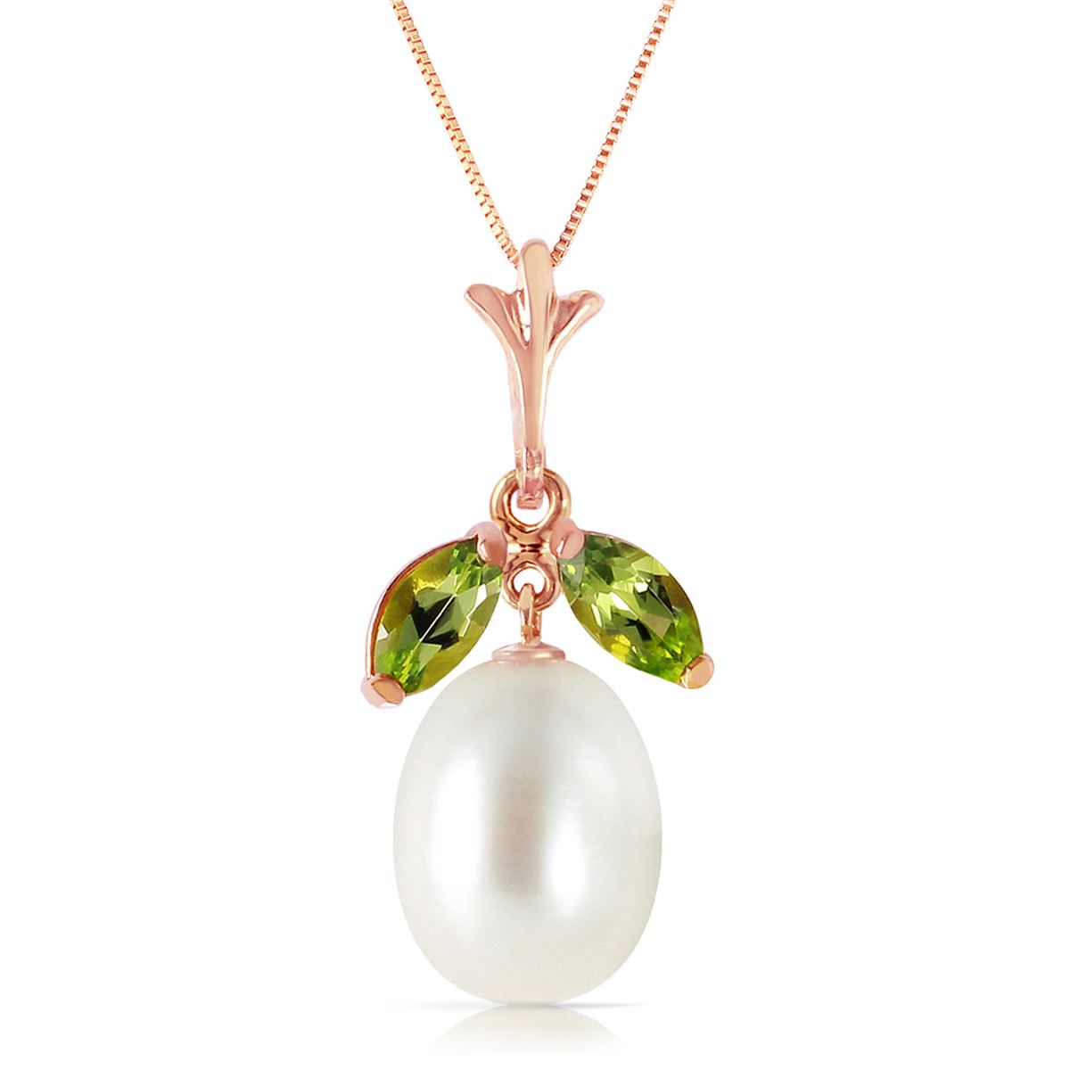 Genuine 14K Rose Gold 4.5 ctw Pearl & Peridot Necklace