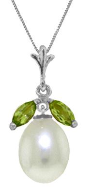 Genuine 14K White Gold 4.5 ctw Pearl & Peridot Necklace