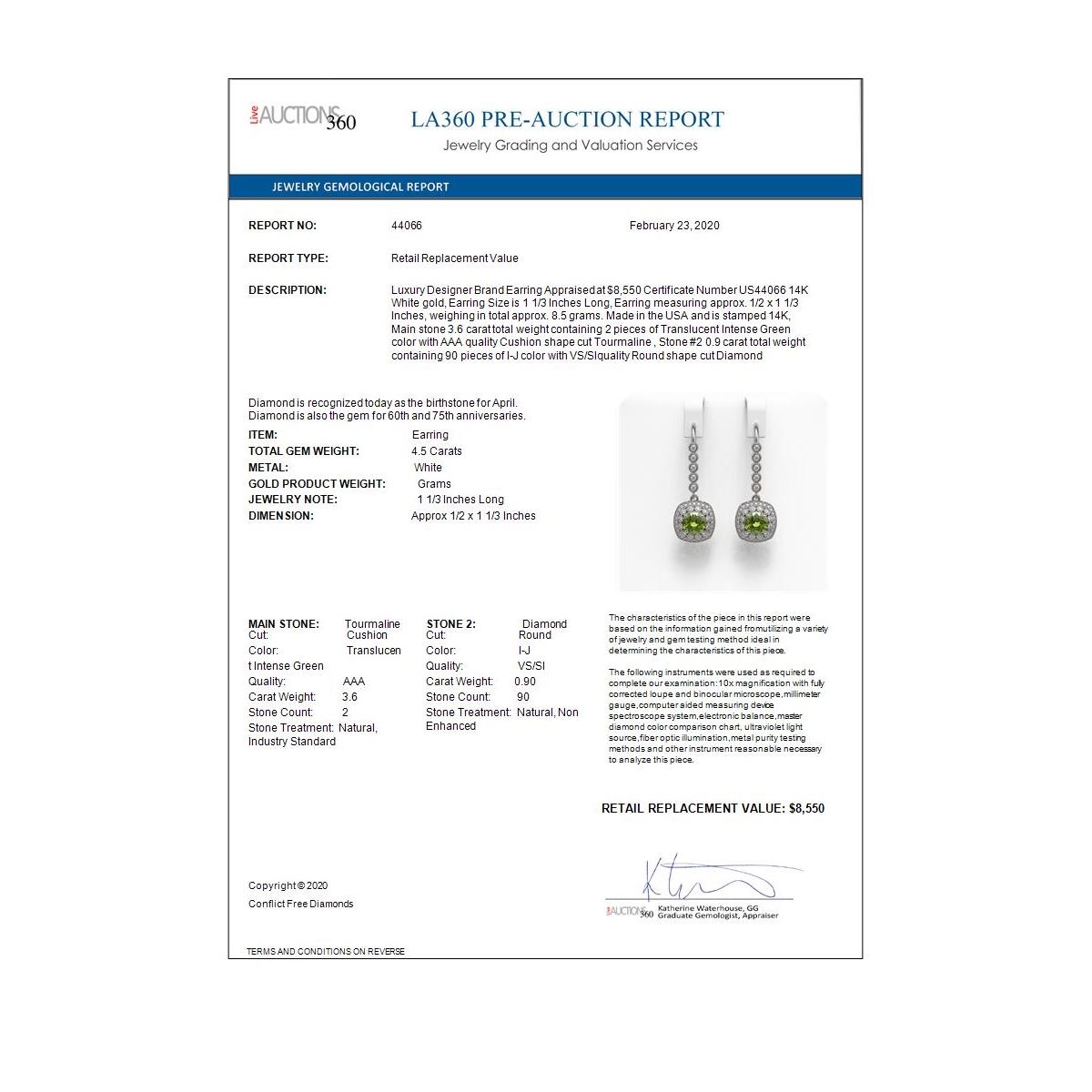 REF-172X8A - SKU: 44066 ---- 4.5 ctw Tourmaline & Diamond Victorian Earrings 14K White Gold