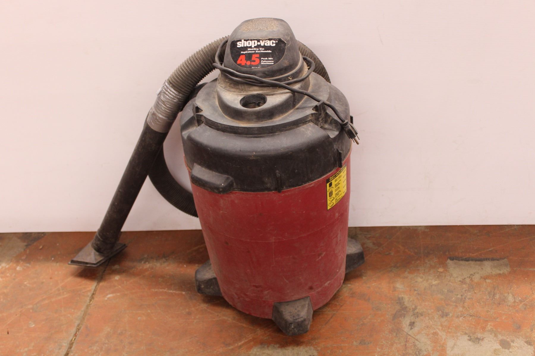*4.5 peak wet/dry shop vac (working) (missing wheels)