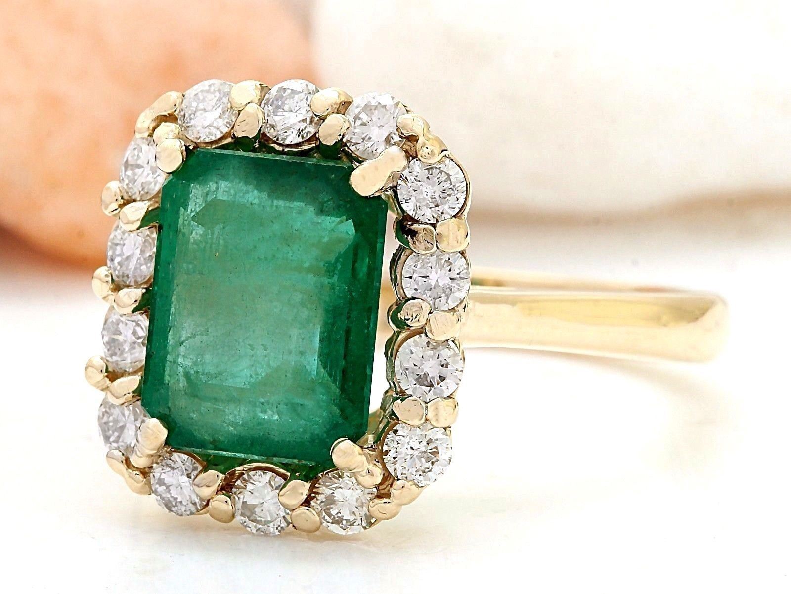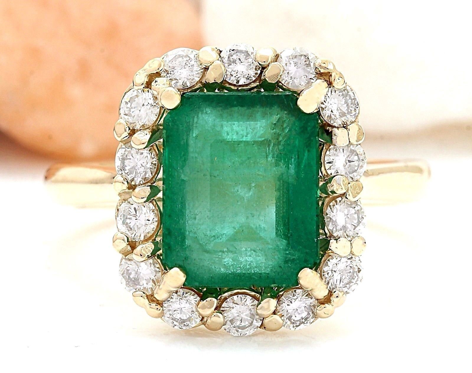4.50 Carat Natural Emerald 14K Solid Yellow Gold Diamond Ring