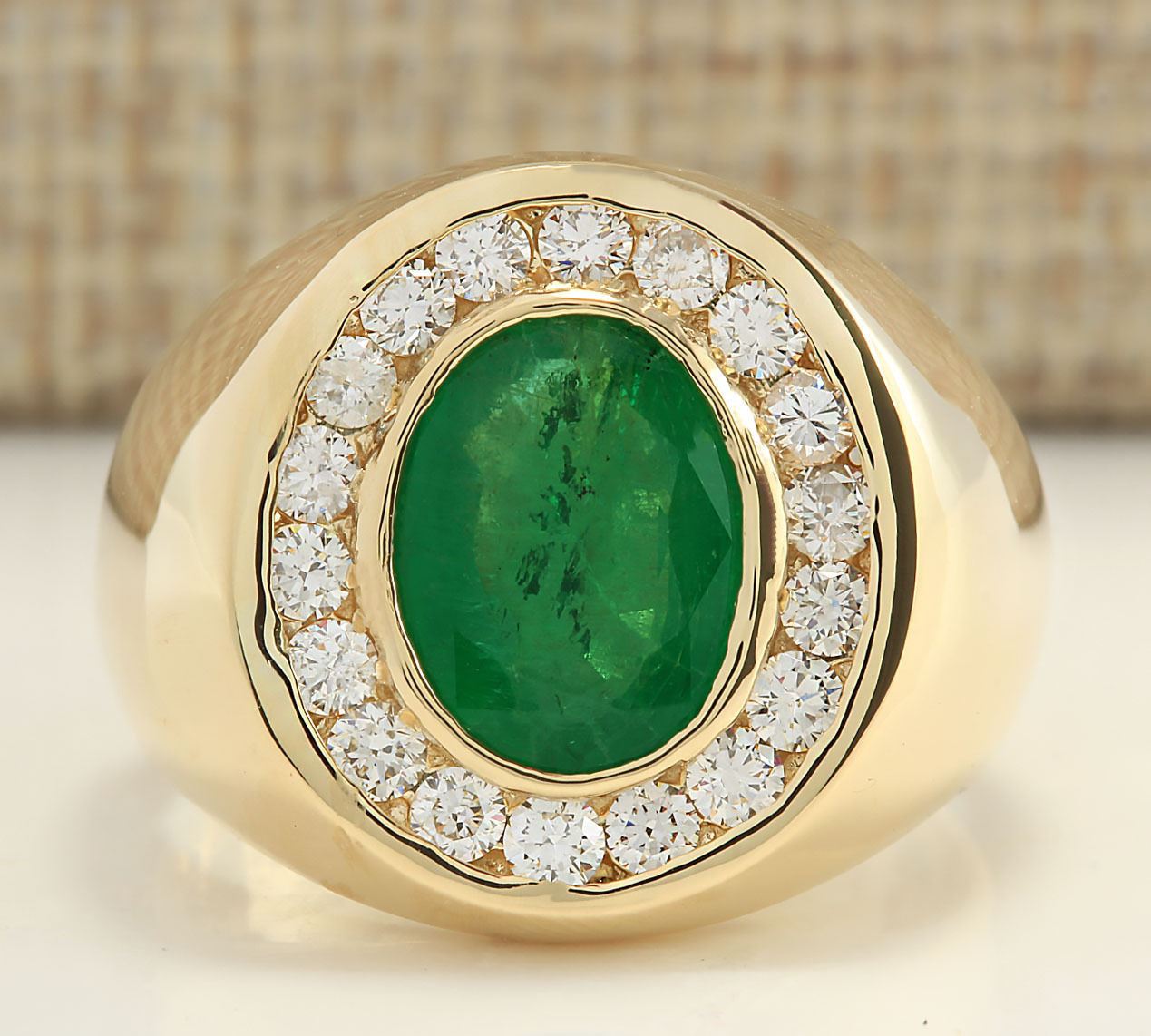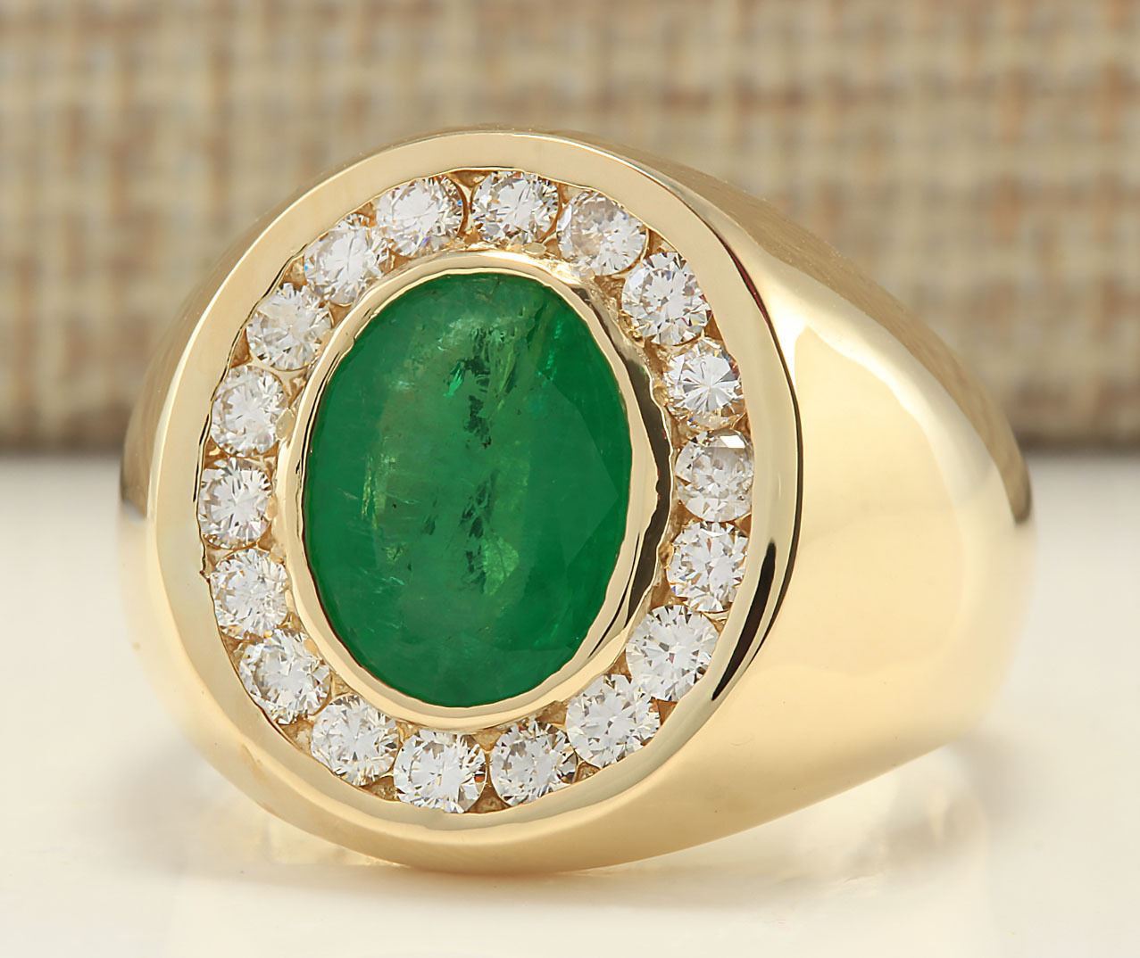 4.50 CTW Natural Emerald And Diamond Ring In 14k Yellow Gold