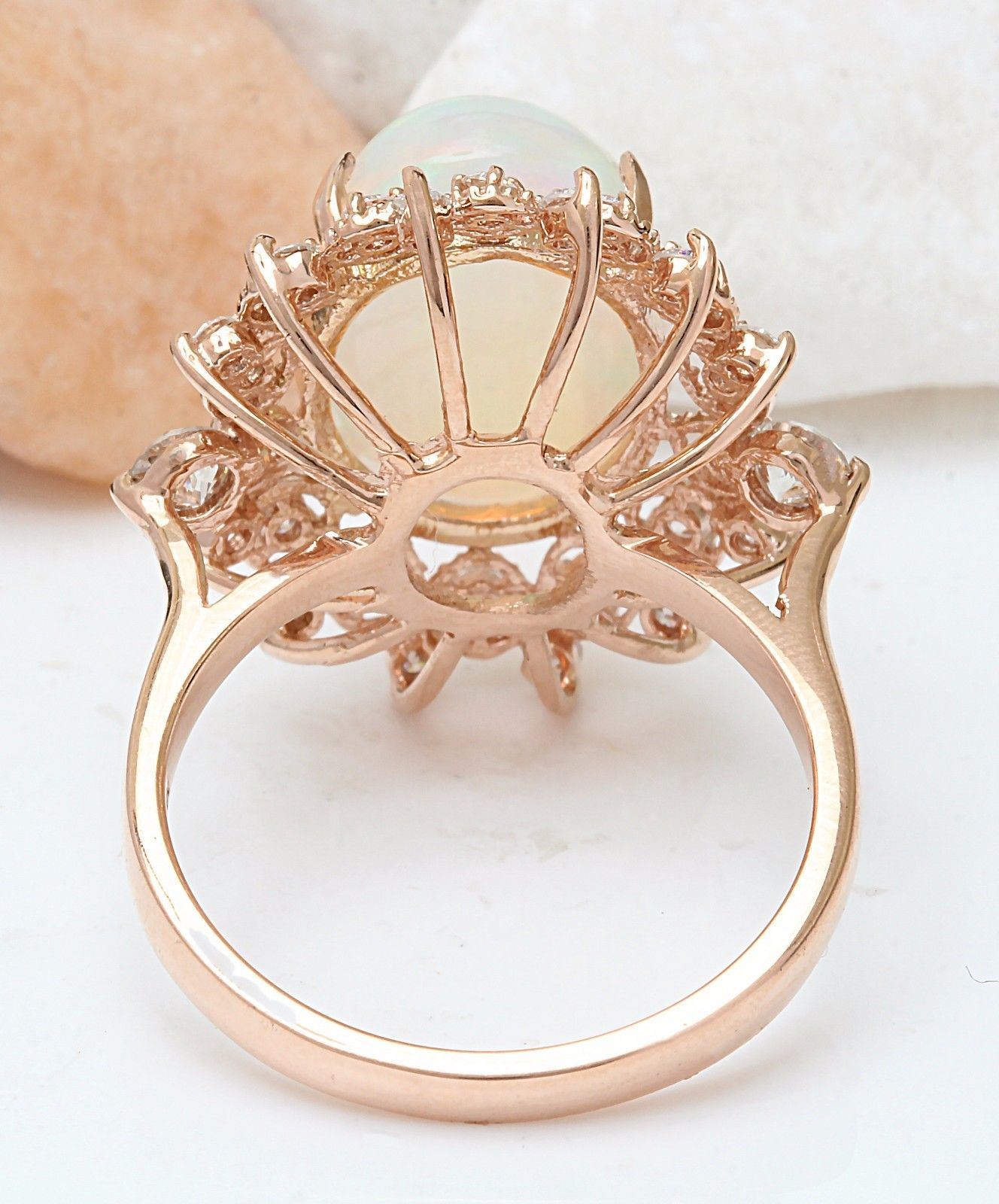 4.50 Carat Natural Opal 14K Solid Rose Gold Diamond Ring