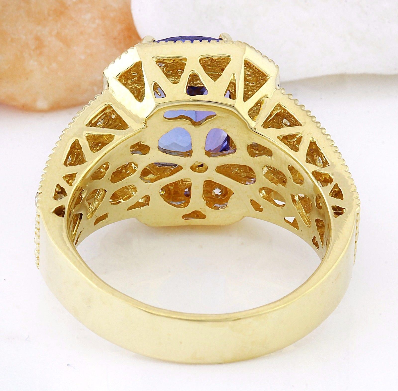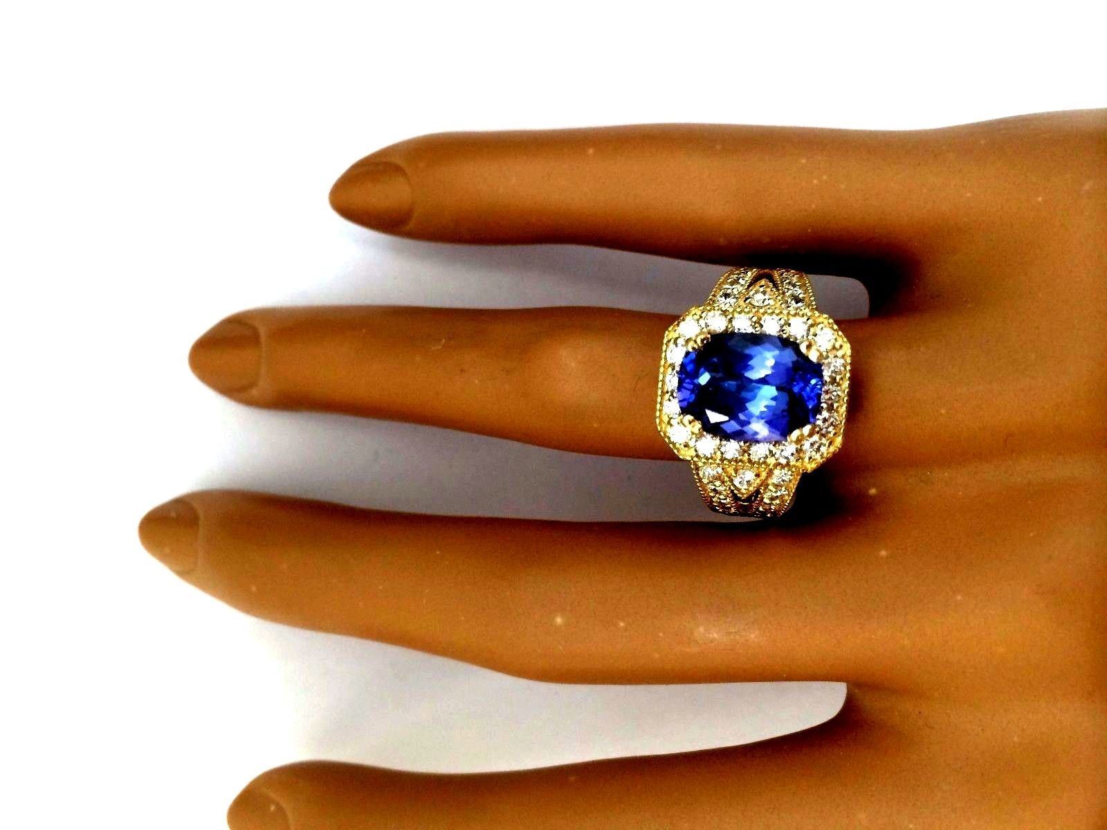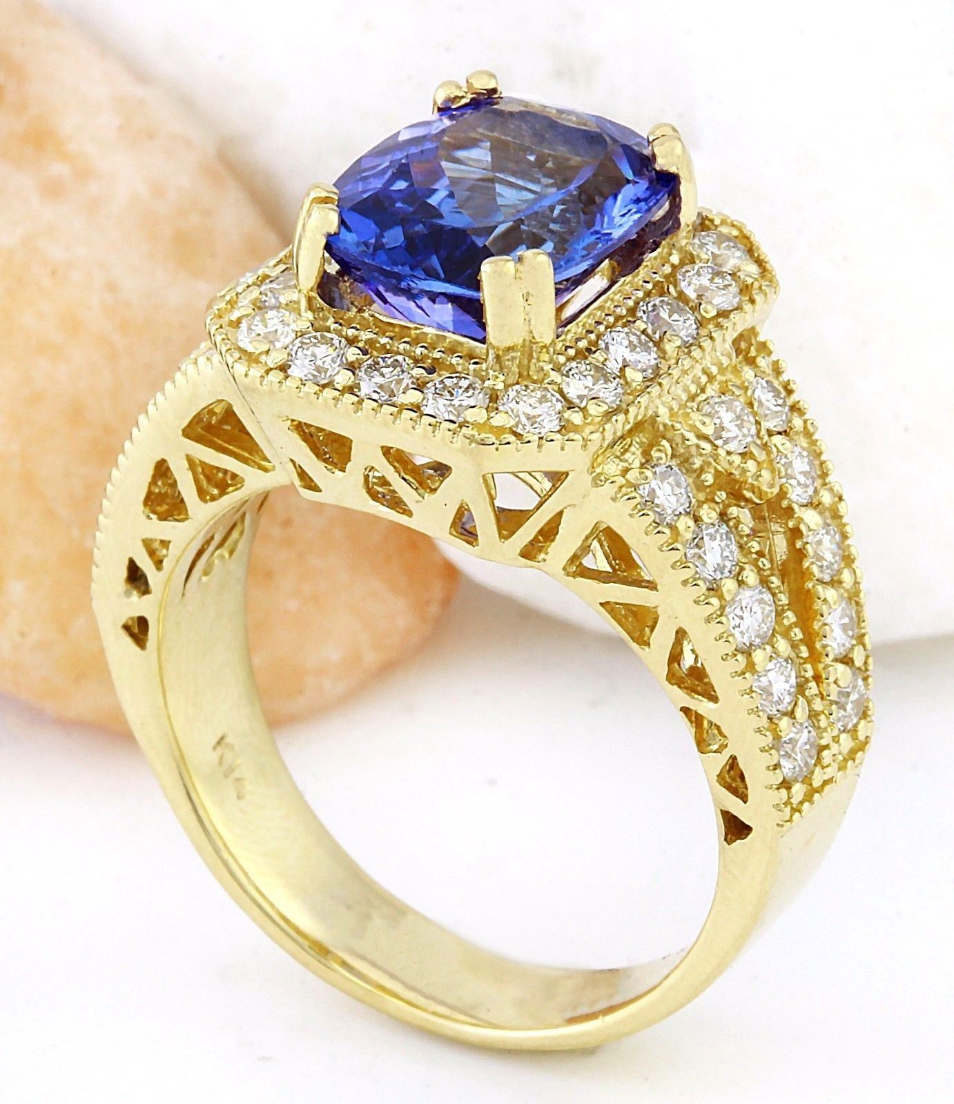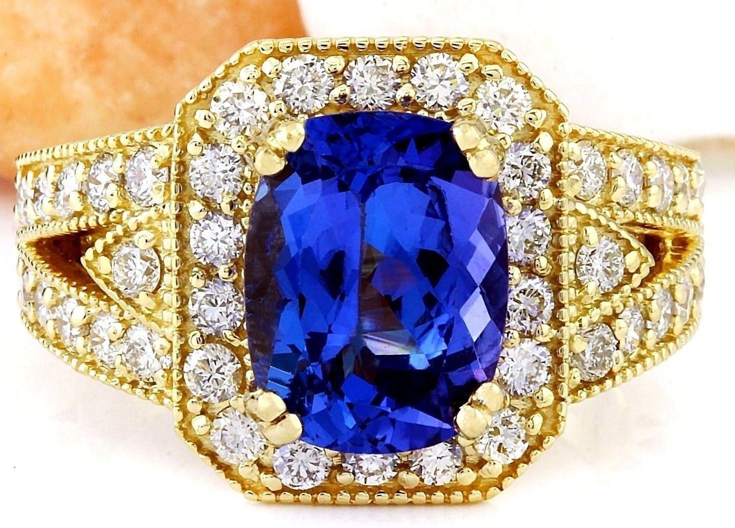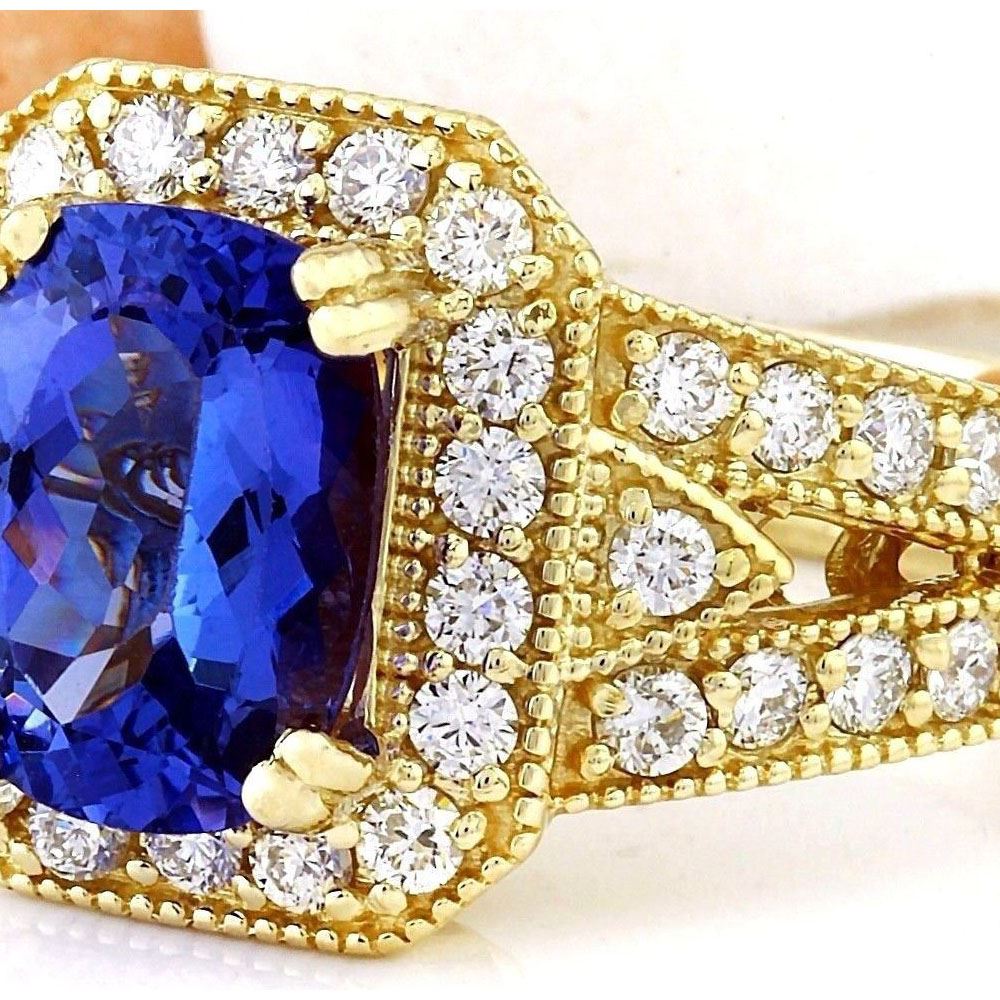 4.50 Carat Natural Tanzanite 14K Solid Yellow Gold Diamond Ring