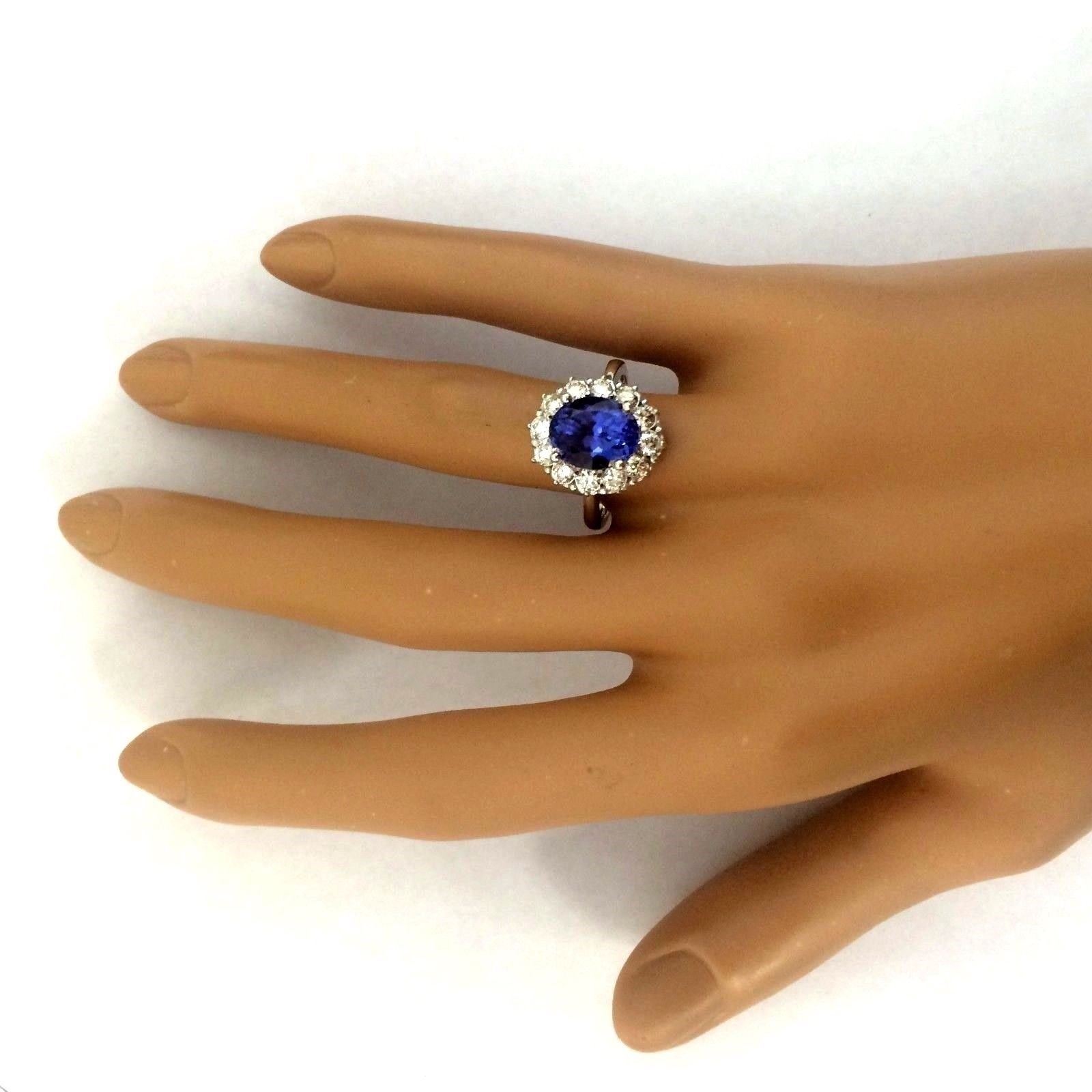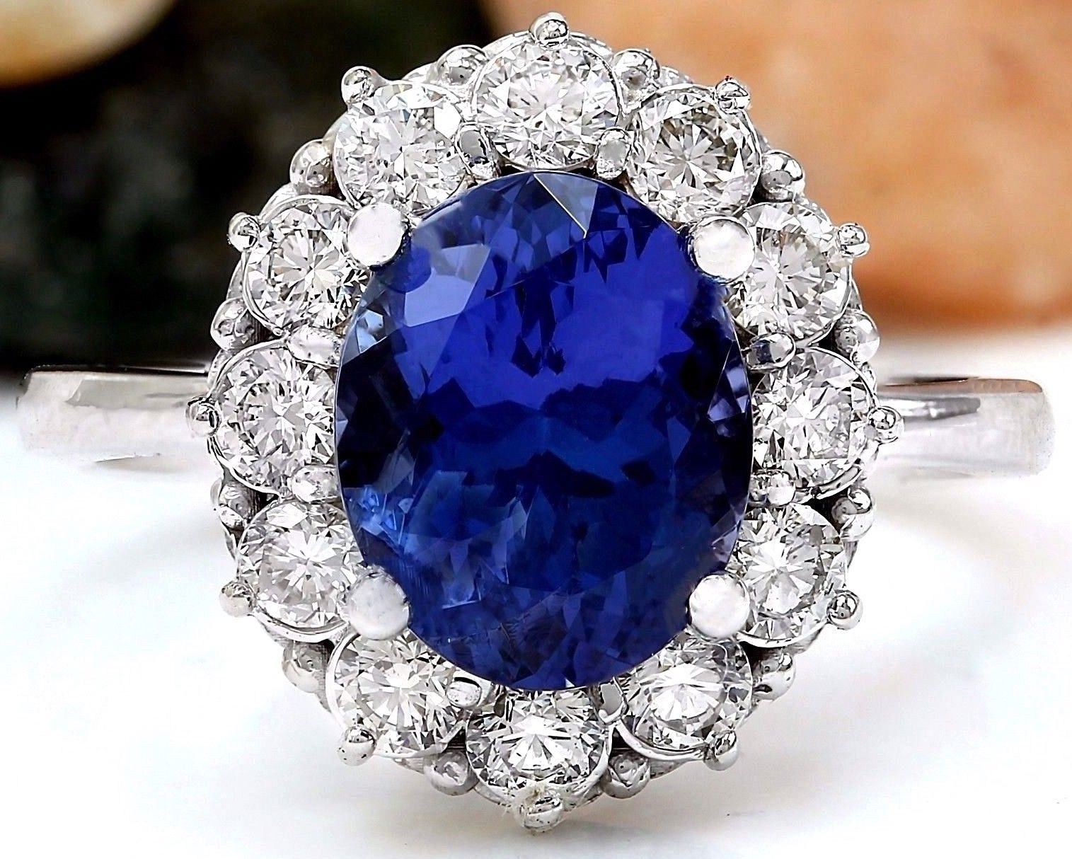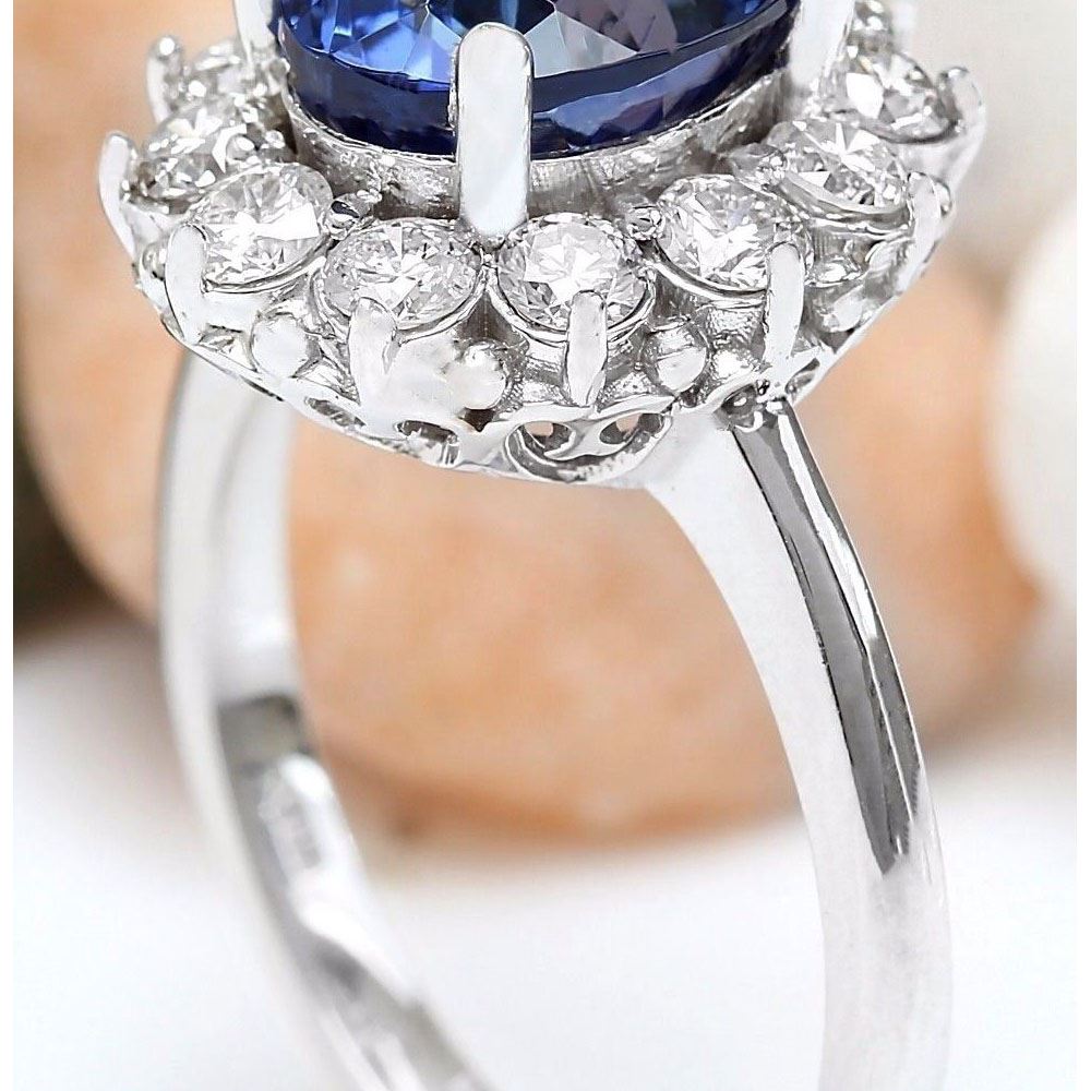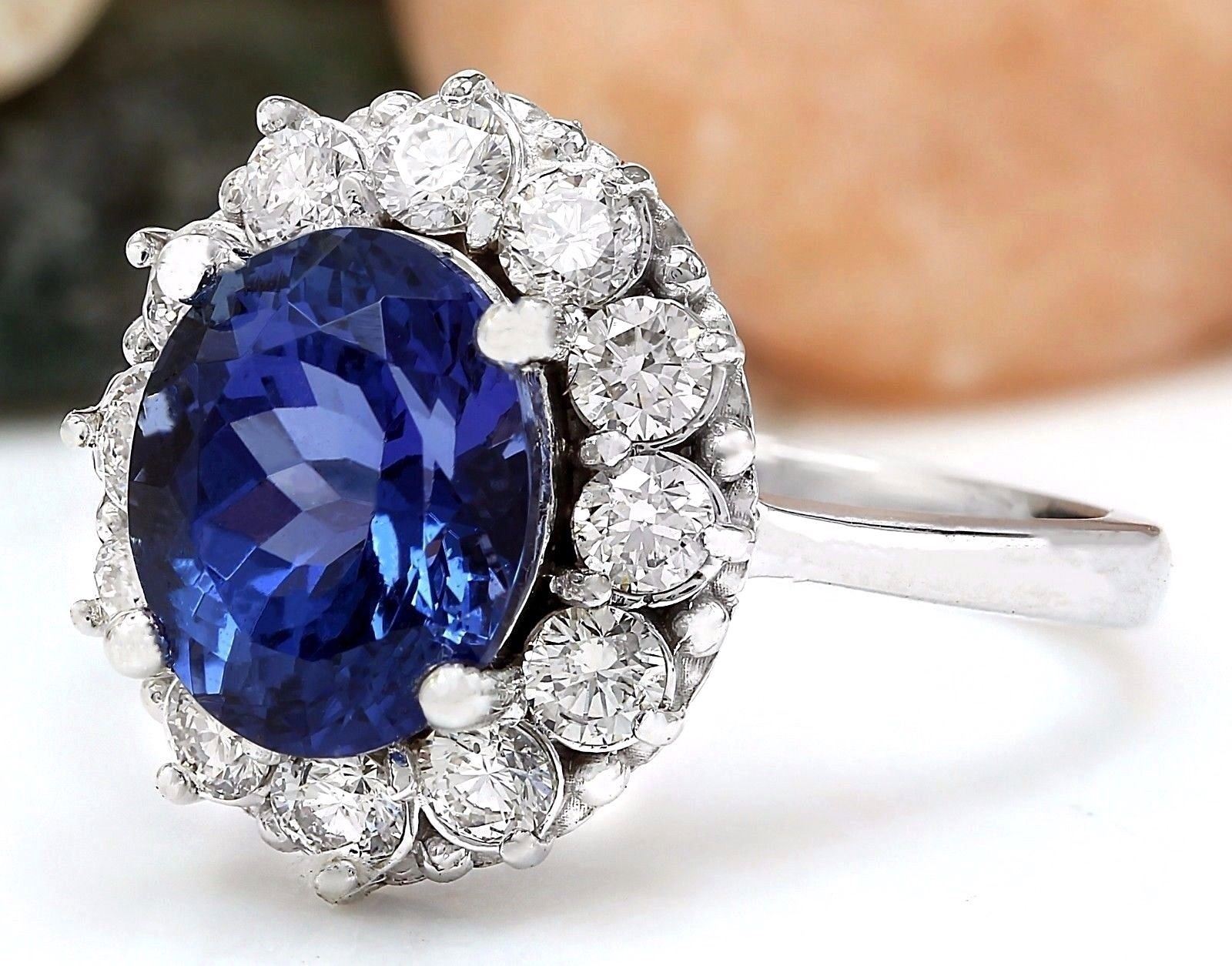 4.50 Carat Natural Tanzanite 18K Solid White Gold Diamond Ring