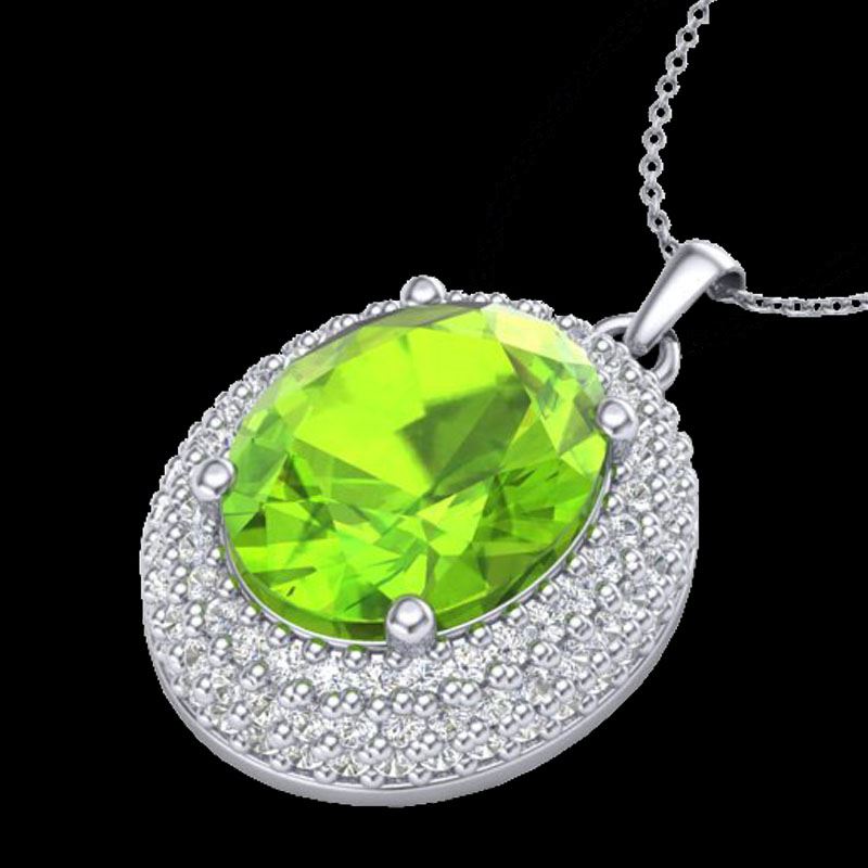 20569 - REF-112M7F ---- 4.50 CTW Peridot & Micro Pave VS/SI Diamond Certified Necklace 18K White Gold ---- Luxury Designer Brand Necklace Appraised at $8,050 Certificate Number US20569  18k White gold,  Necklace Size is 16 Inches, Necklace measuring approx. 5/8 X 1/2", weighing in total approx. 4.8 grams. Made in the USA and is stamped 18k, Main stone 3.75 carat total weight containing 1 pieces of Intense Green color with AAA quality Oval shape cut Peridot , Stone #2 0.75 carat total weight containing 102 pieces of H-I color with  VS/SI quality Round shape cut Diamond