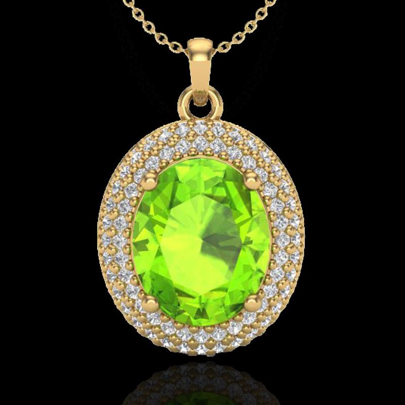 REF-112K8W -20570 ---- 4.50 CTW Peridot & Micro Pave VS/SI Diamond Necklace 18K Yellow Gold ---- Luxury Designer Brand Necklace Appraised at $8,050 Certificate Number US20570  18k Yellow gold,  Necklace Size is 16 Inches, Necklace measuring approx. 5/8 X 1/2", weighing in total approx. 4.8 grams. Made in the USA and is stamped 18k, Main stone 3.75 carat total weight containing 1 pieces of Intense Green color with AAA quality Oval shape cut Peridot , Stone #2 0.75 carat total weight containing 102 pieces of H-I color with  VS/SI quality Round shape cut Diamond