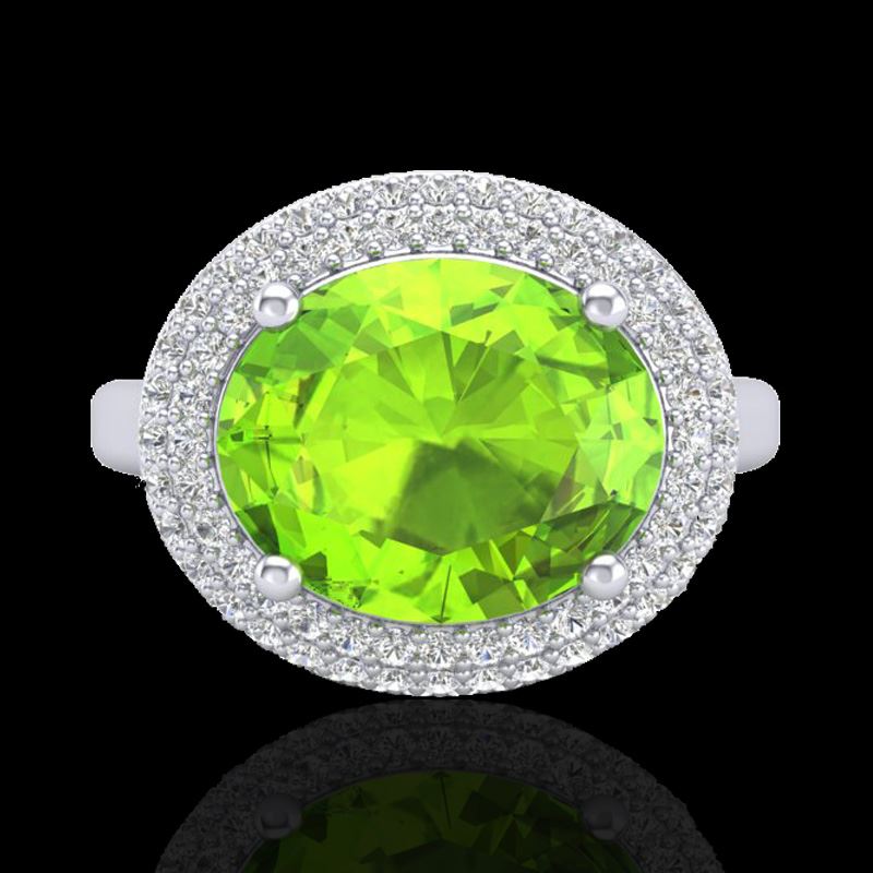 REF-116H2A -20920 ---- 4.50 CTW Peridot & Micro Pave VS/SI Diamond Ring 18K White Gold ---- Luxury Designer Brand Ring Appraised at $8,300 Certificate Number US20920 18k White gold, Ring Size is 7, Ring measuring approx. 5/8 X 1/2", weighing in total approx. 6 grams. Made in the USA and is stamped 18k, Main stone 3.75 carat total weight containing 1 pieces of Intense Green color with AAA quality Oval shape cut Peridot , Stone #2 0.75 carat total weight containing 102 pieces of H-I color with VS/SI quality Round shape cut Diamond