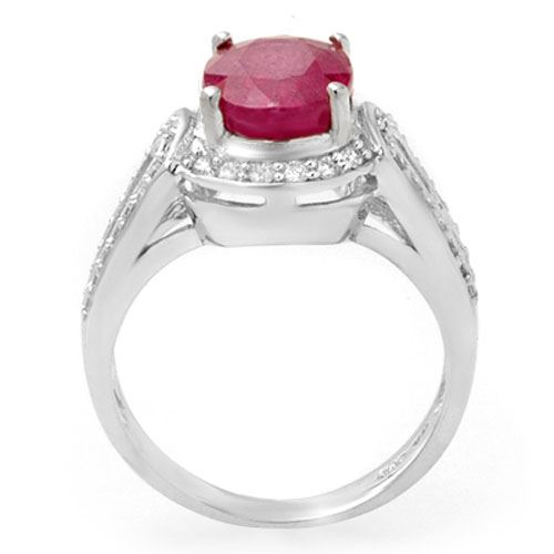 REF-85H5A -14541 ---- 4.50 CTW Ruby & Diamond Ring 14K White Gold ---- Luxury Designer Brand Ring Appraised at $6,100 Certificate Number US14541 14k White gold, Ring Size is 6.75, Ring measuring approx. 7/16" x 3/4" , weighing in total approx. 7 grams. Made in the USA and is stamped 14k, Main stone 4 carat total weight containing 1 pieces of Mid-Opaque-Deep Red color with AAA quality Oval shape cut Ruby , Stone #2 0.5 carat total weight containing 46 pieces of H-I color with VS/SI quality Round shape cut Diamond